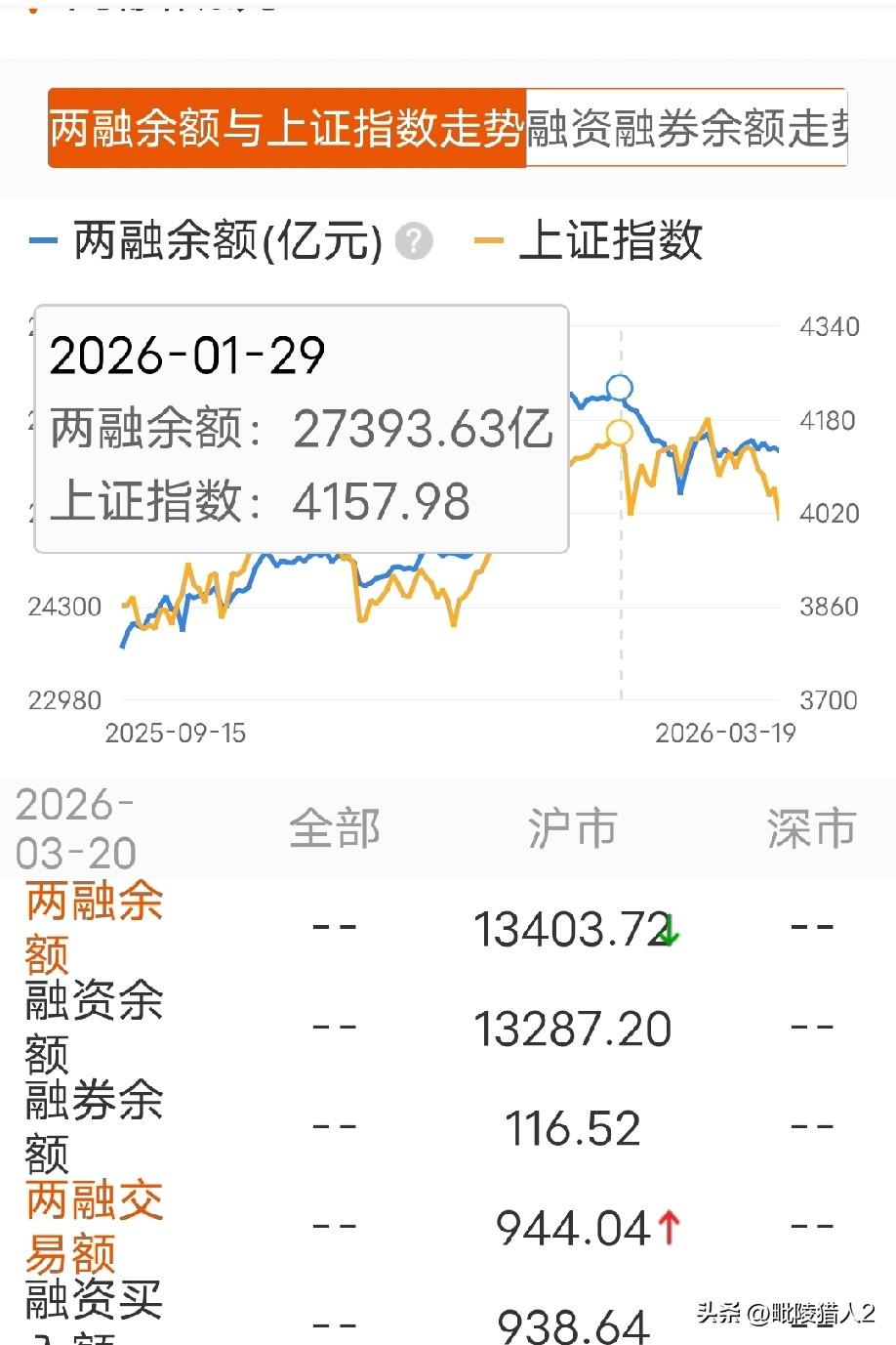 截止3月19日,A股两融余额为26501.28亿元。最高的时候是今年1月29日,数值27393.63亿元,为A股历史极值。这其中99%以上为触资额,只有极少部分为融券额。 融资入市听着很高大上,其实难听点讲就借钱赌博。管理层当然要控制。按照今年1月中旬的市场热度(98℃),融资额度很快会涨上2.8万亿,按照这种涨法,一旦市场出现意外情况(比如说现在的美伊战争),融资盘的崩塌立即会摧垮市场。所以融资额不能再继续上升了!村里提出给市场降温就是这么来的。 实事求是地讲,自今年1月16日管理层提出降温并真枪实弹地赎回10000亿宽基ETF后,对市场的调控效果并不佳,没有将两融余额有效打压下来,因为大部分的融资盘都集中在科技板块而不在蓝筹板块,这令村里非常头疼。 那么,用什么方法才能挤出融资盘呢?现在管理层剩下的最后一个大招就是量化交易。由于融资盘的时间成本是比较大的,所以前段时间量化交易通过压制指数磨时间,但是并不奏效,大家好像都不怕。那么,现在要放出磨空间的绝招了,这一招是任何融资盘都无法承受的,因为它剑指的不是融资利息,而是直指本金。从这个意义上讲,大家认为管理层可能放弃量化交易吗?我们不能太天真。 因此,后期指数会调整到什么点位,K线说了不算,得要观察融资余额这个内在核心逻辑。估计管理层的目标是要将其降至2万亿左右。目前市场刚刚跌破4000点,融资盘好像还没怎么动,如果跌倒3900点或3800点,那么情况就大不相同了。密切关注。 有一点非常令人遗憾,管理层希望散户用银行存款入市,要么去买基金、要么自己操作。但是从居民存款总额看,2026年2月份总额为345.72万亿,比2025年2月份的265.6万亿还多出80万亿。居民存款好像不大愿意入股市,这是为什么呢?