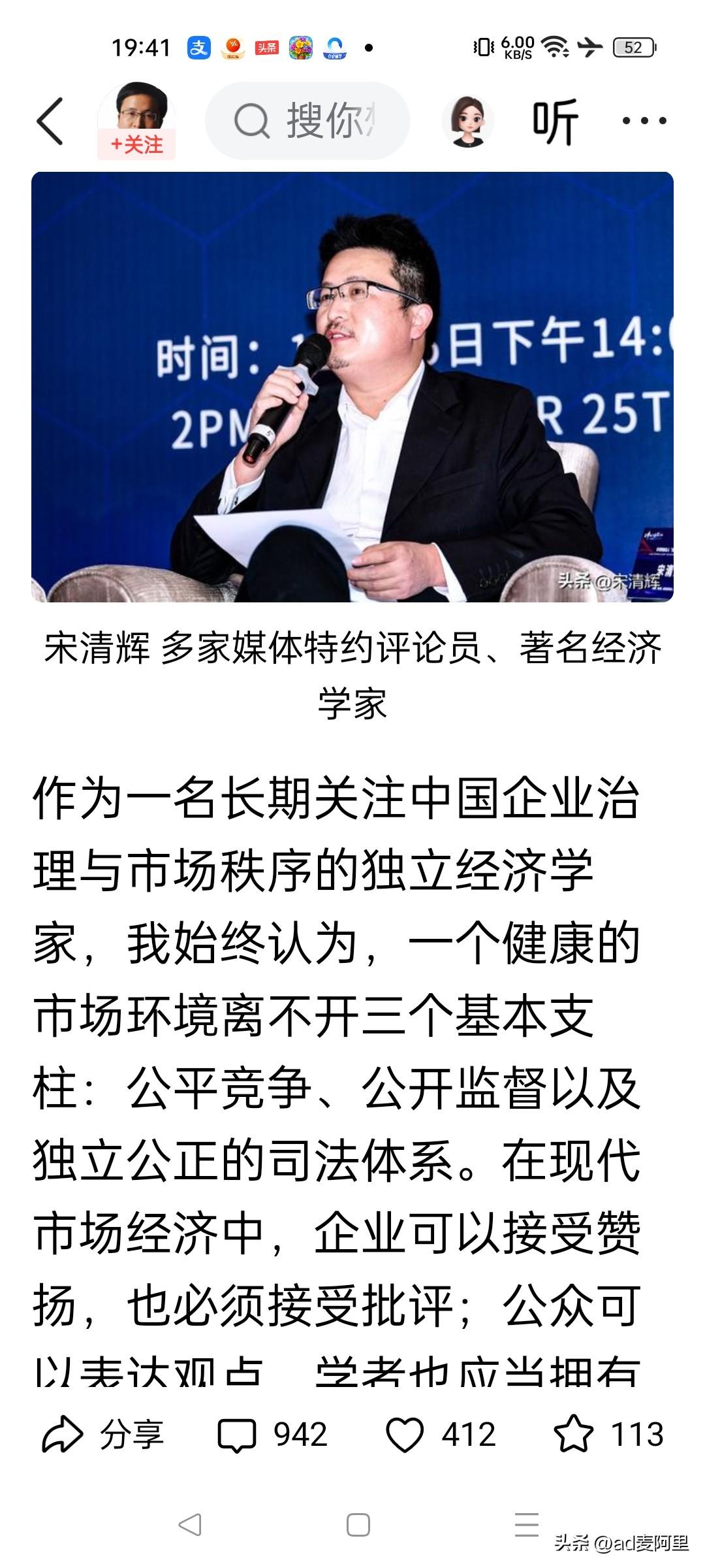 此人,中午正能量了一回… 大家看看宋先生这次的发文,我看了评论,大多数支持宋先生