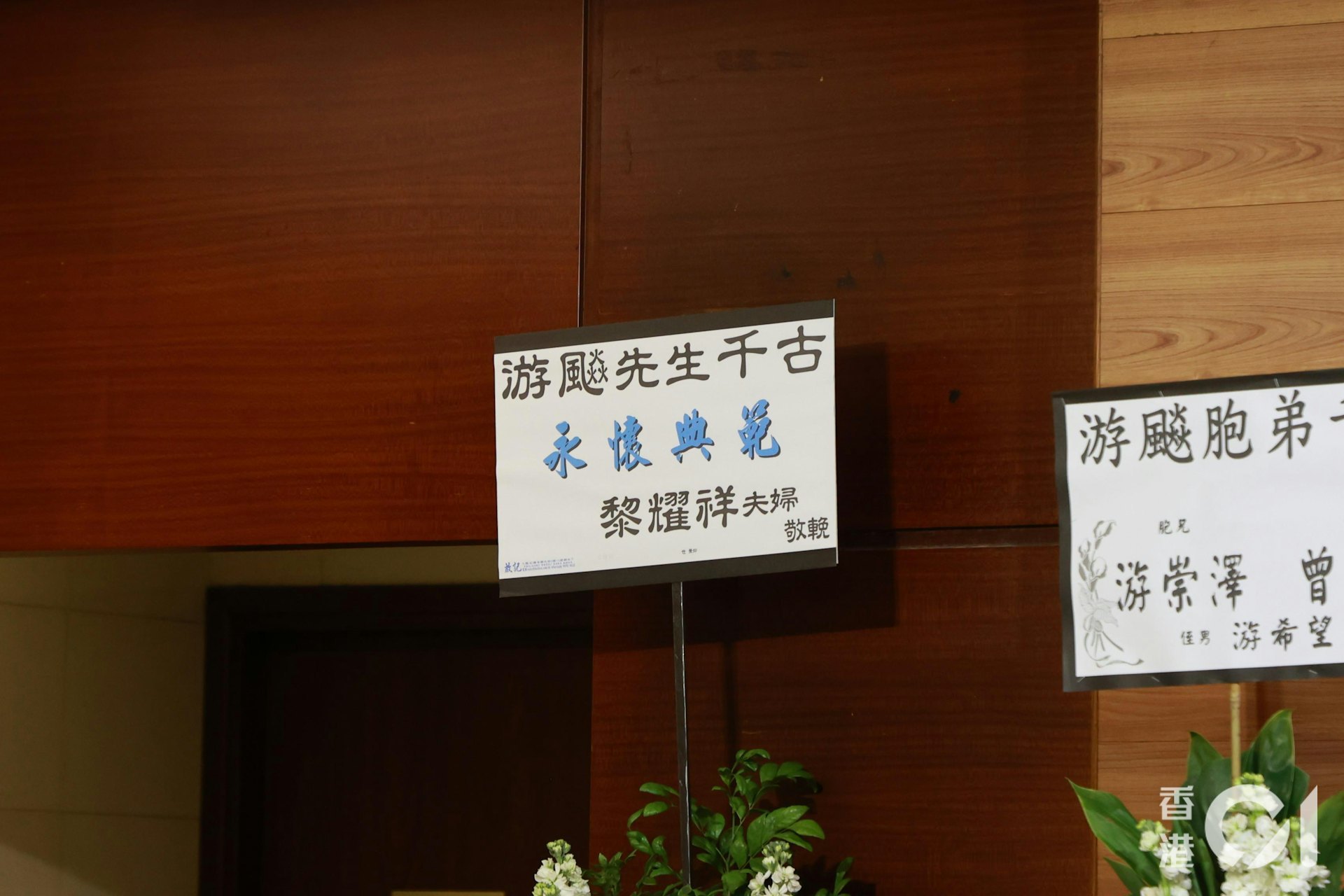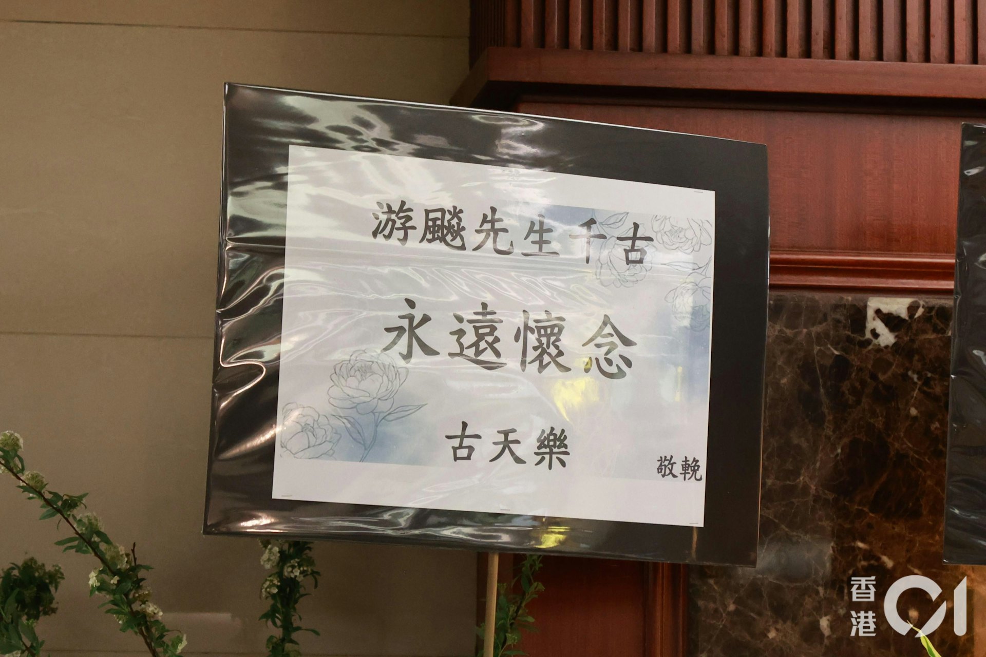 游飈生前圈中人缘极佳,有不少演艺圈人士亦送上花牌致意,包括昔日合作演员及幕后工作人员、古天乐、林家栋、黎耀祥、麦包、刘锡贤,颜仟汶,黄文标、胡杏儿、黄泽锋、陈丽丽夫妇、花牌上写满「永怀怀念」、「典范长存」等字句,寄托无限思念。