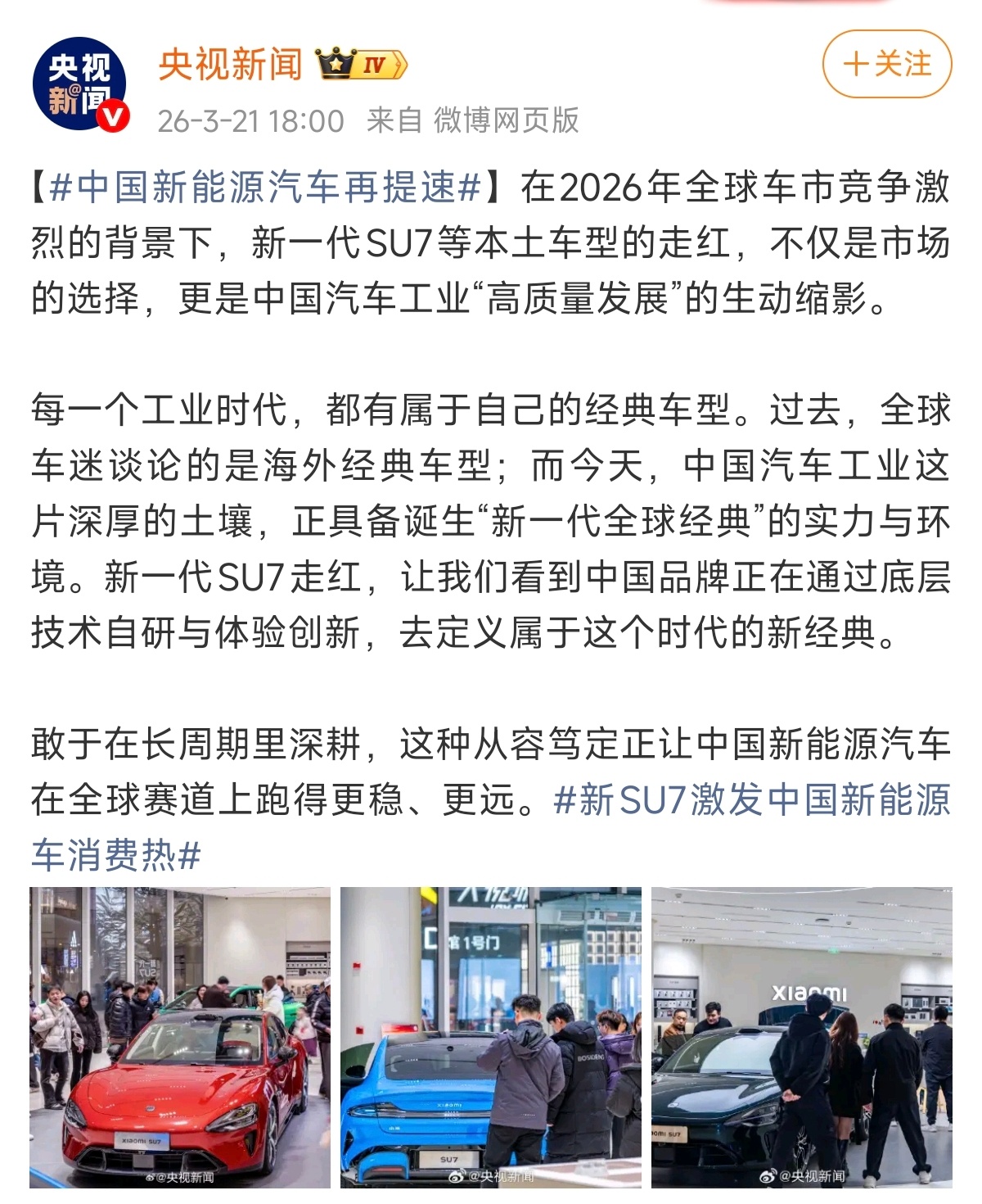 老款小米SU7发大定数据,有些人又是质疑数据有水分,又是酸小米卖得好是因为品牌有优势,结果老款SU7拿下去年20万以上轿车销量冠军,用实打实的成绩打脸这些职业喷子。新一代SU7选择不公布大定数据而直接公布锁单量,这群人转过头来又把锁单和大定混为一谈,开始唱衰新一代SU7,横竖就是要证明小米不行。而事实是,新一代SU7发布之后,锁单数据一直优于第一代SU7,更是直接超越二月份Model3销量,央视也直接定调新SU7激发中国新能源车消费热。再看周末小米之家看车人流如潮,喷子们的唱衰言论不攻自破。