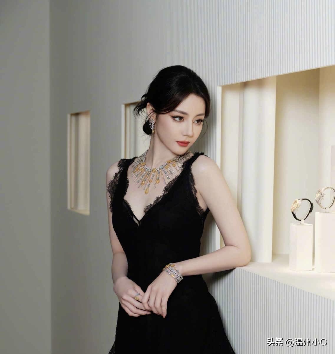 女明星的脖子可是最佳广告位之一,热巴的珠宝项链铺设得够大够广,品牌方必须满意。