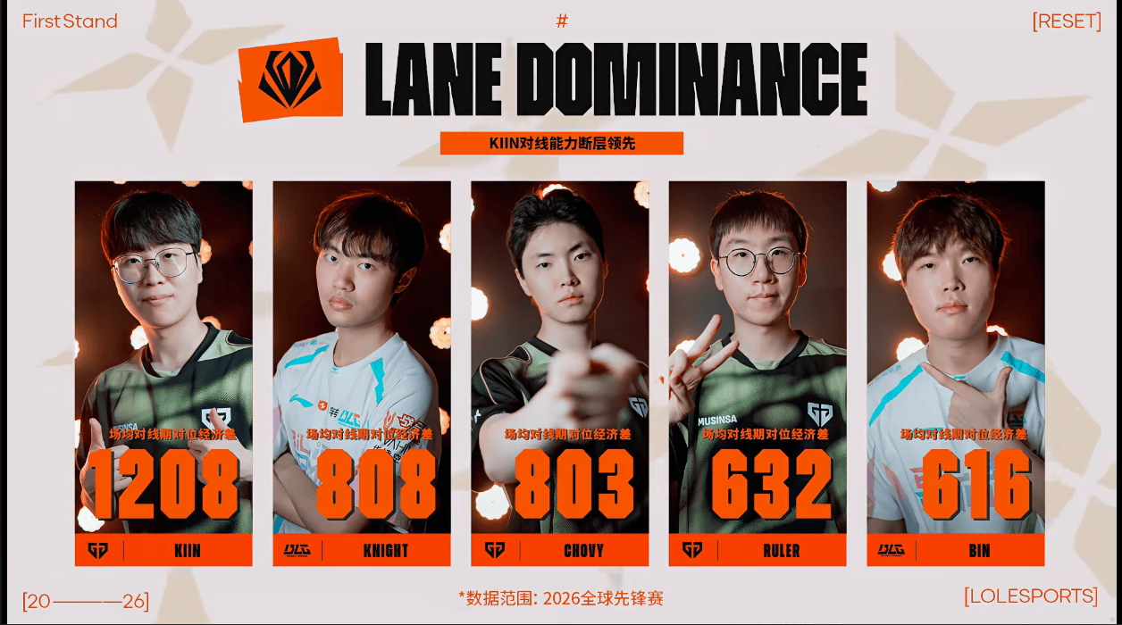 kiin场均对线期对位经济差高居榜首,BLG与GEN包揽前五