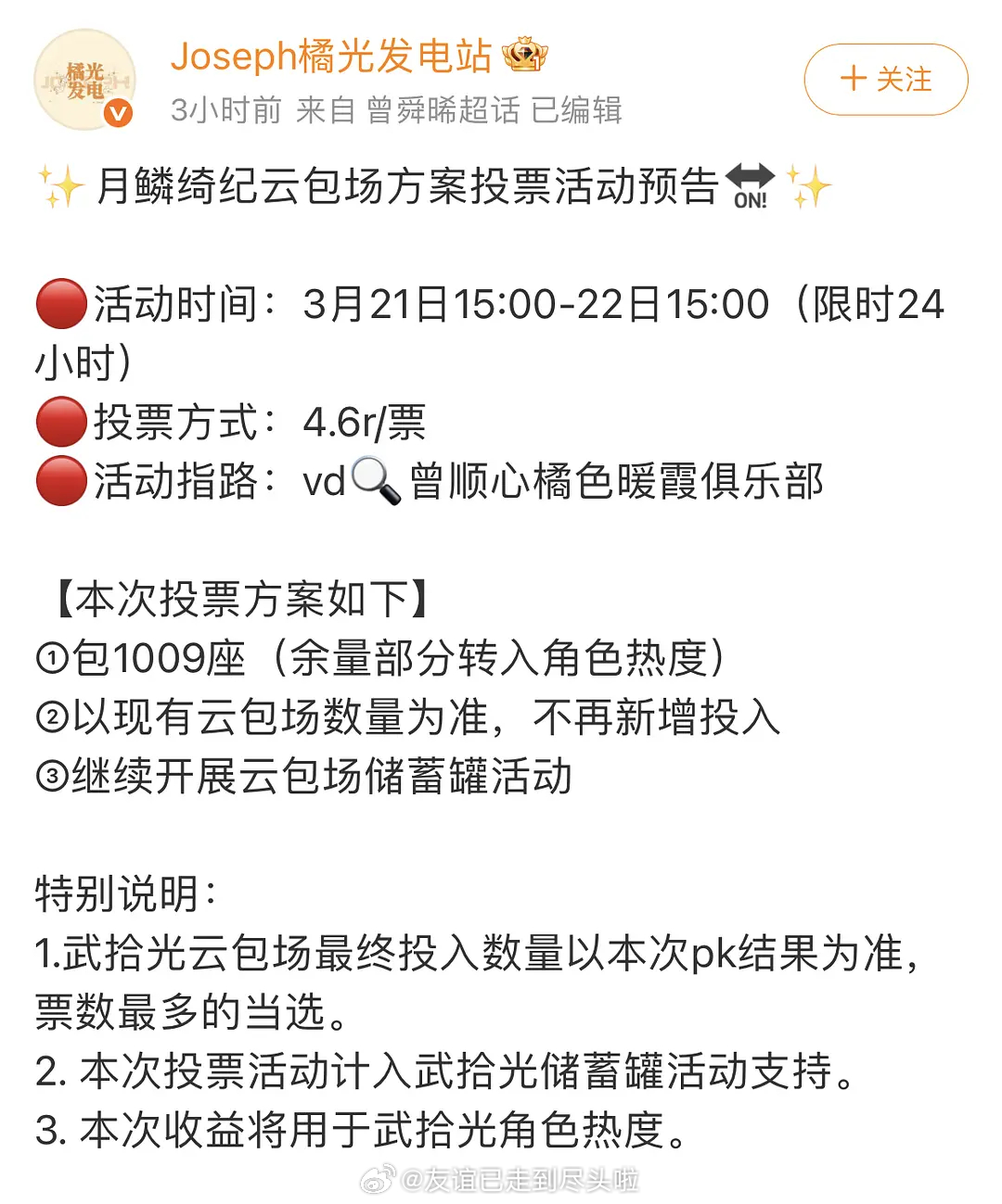 曾舜晞粉丝打响反云包场第二弹目前定下包1009,让大家投票要不要增加云包场数量,其他转入角色宣传月鳞绮纪