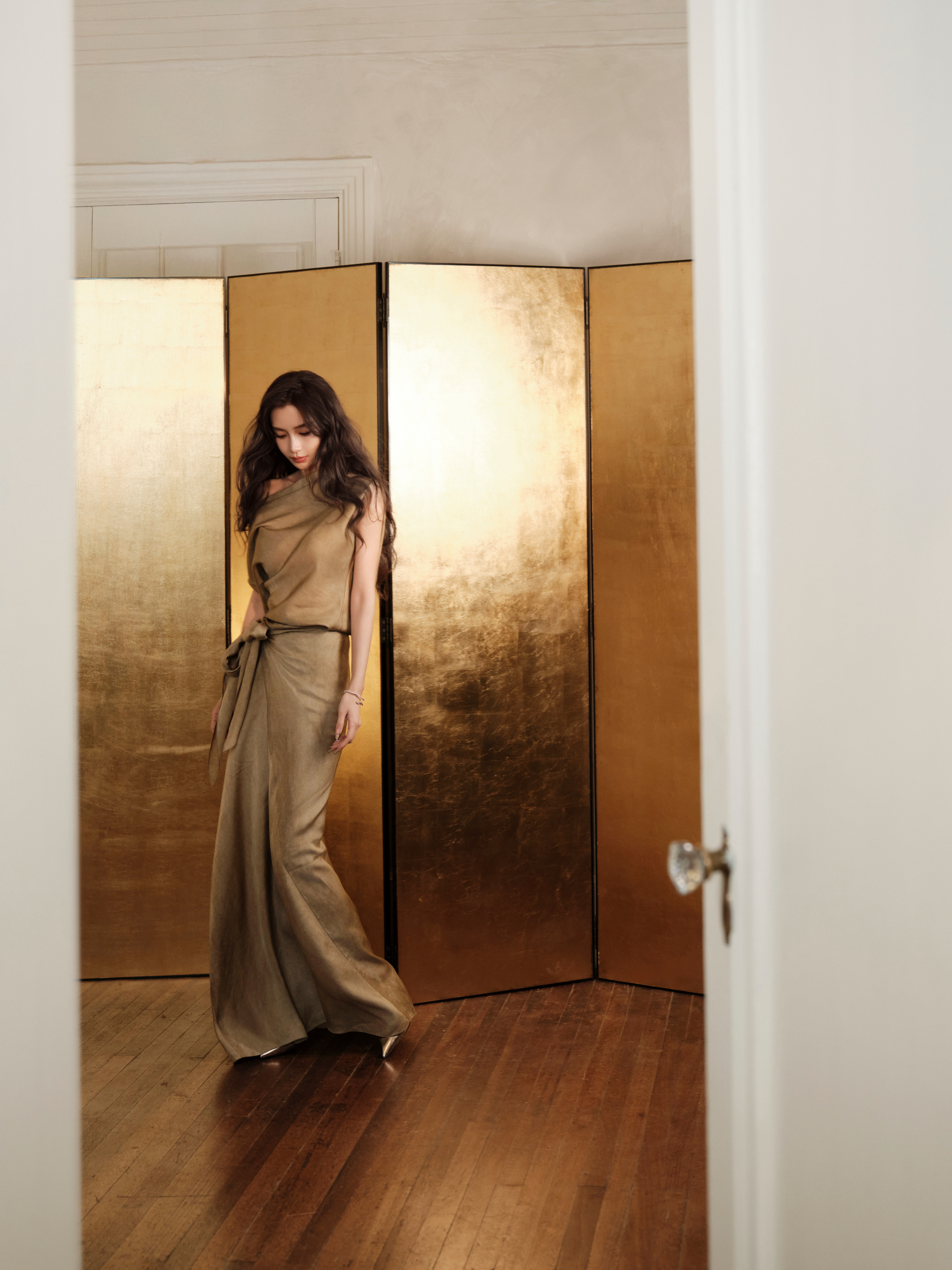 Angelababy|昨晚上城士活动造型出图,身穿西班牙品牌 Cortana 斜肩长裙,尽显优雅的东方美人