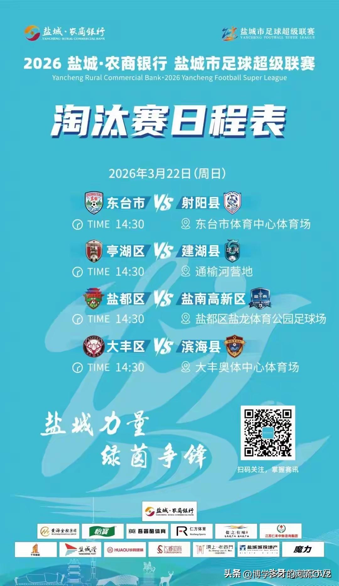 2026年盐城足球超级联赛,结束了第3轮比赛。 八强已经产生,图2是下一轮的对