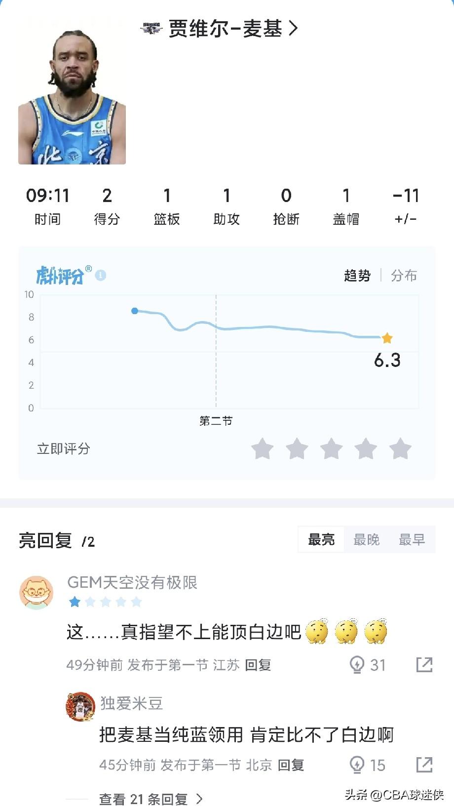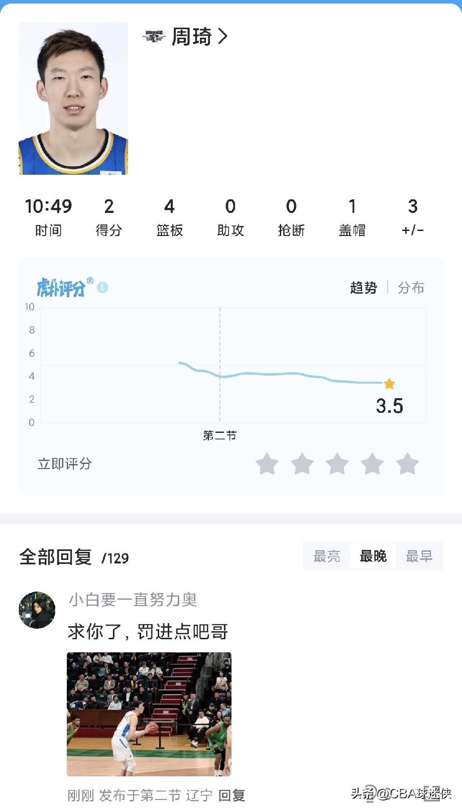 周琦+麦基还不如莫兰德一个人?北京双塔半场被打成“纸老虎” 半场结束,45-37,辽宁领先。 说好的内线优势呢? 周琦:2分4篮板 麦基:2分1篮板3犯规 两人加起来4分5篮板,还不如莫兰德一个人——5分8篮板3助攻。 篮板球辽宁26个,北京13个,刚好少了一半。这可是周琦+麦基啊,国内最强内线+NBA三冠中锋,结果被莫兰德一个人按在地上摩擦。 上半场还没打完,麦基已经3次犯规,周琦在场上像个折返跑运动员。说好的双塔威慑力,在辽宁面前成了摆设。