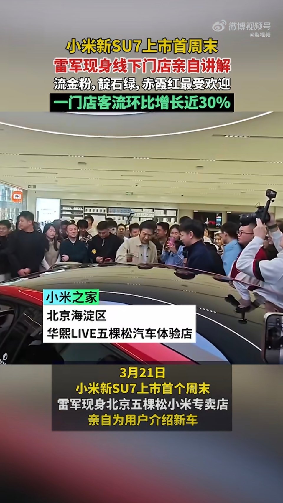 小米新SU7上市首个周末雷军现身门店讲解新SU7雷总怎么又到门店兼职了,小米线下店都要挤爆了!也是,外观、智能配置、双腔空悬等升级太多了。