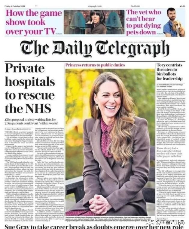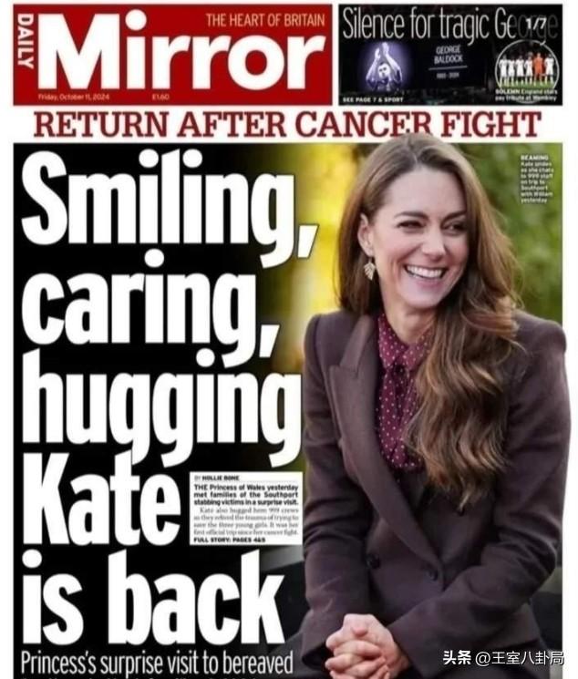 梅根,不要闹腾了,凯特王妃才是英国王室真正的顶流明星 10月10日,凯特王妃携手威廉王子出席首场公开活动,次日变成了全网的头版头条。 这可是梅根羡慕不来也买不来的。 前几日梅根刚卯足力气,红裙亮相,这才换来小报一个头版, 而且不是叫好叫座,而是被奚落的体无完肤。 对照组凯特王妃立刻被各大媒体默契的捧了起来,次日的头版头条,不约而同的看到了凯特王妃的身影。 虽达不到婆母戴安娜王妃万人空巷一般的影响力,但也是这个媒体大爆炸时代公认的明星了。 梅根还是不要自不量力的上窜下跳了。 蹦跶的越欢快,公众反感越高。 并不是每一个王子的妻子都是王妃,德不配位却强硬上位的,只能让群众越来越反感!
