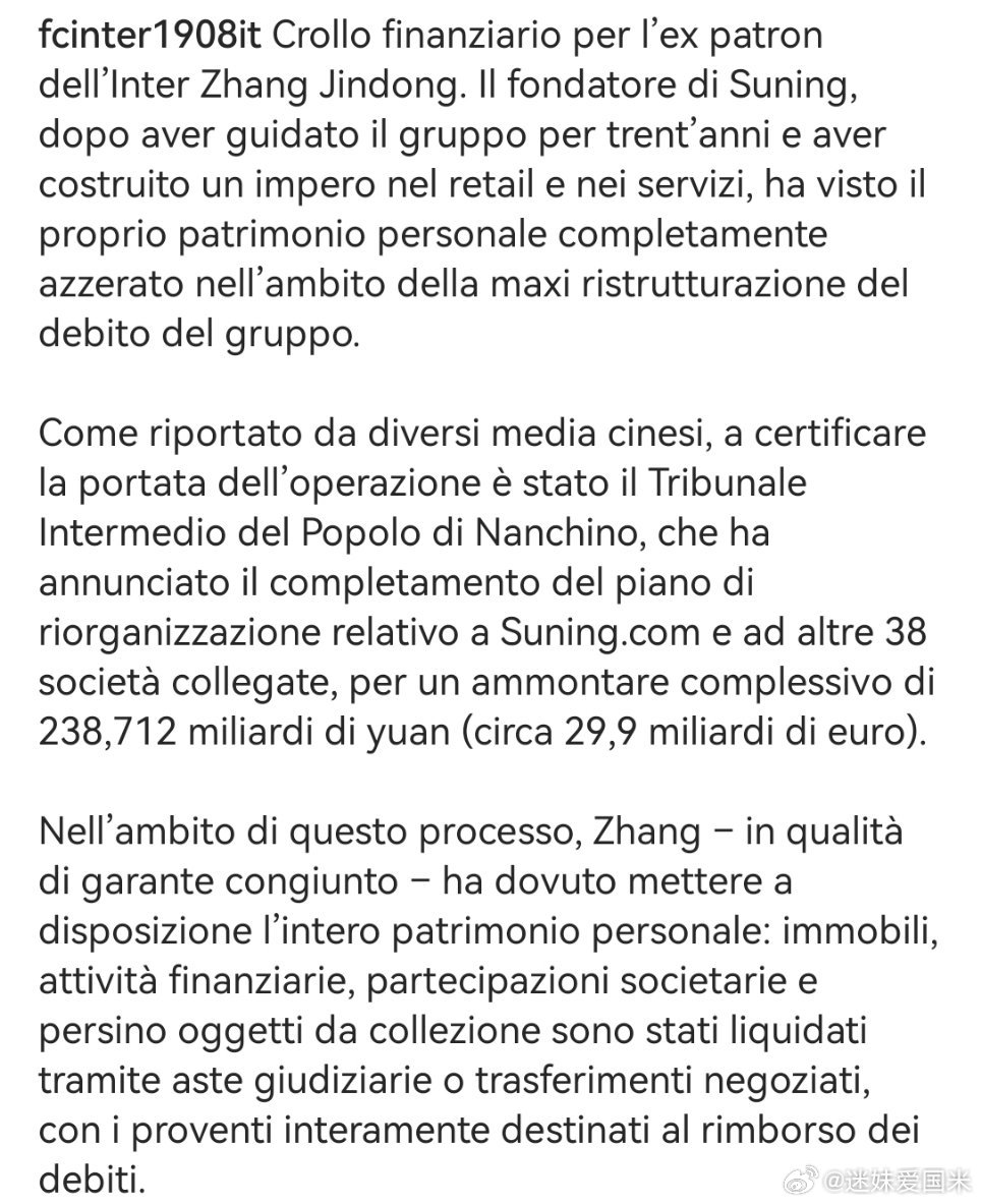 Fcinter1908报道了苏宁和张近东近期的资讯,不翻译了自行了解就好。国际米
