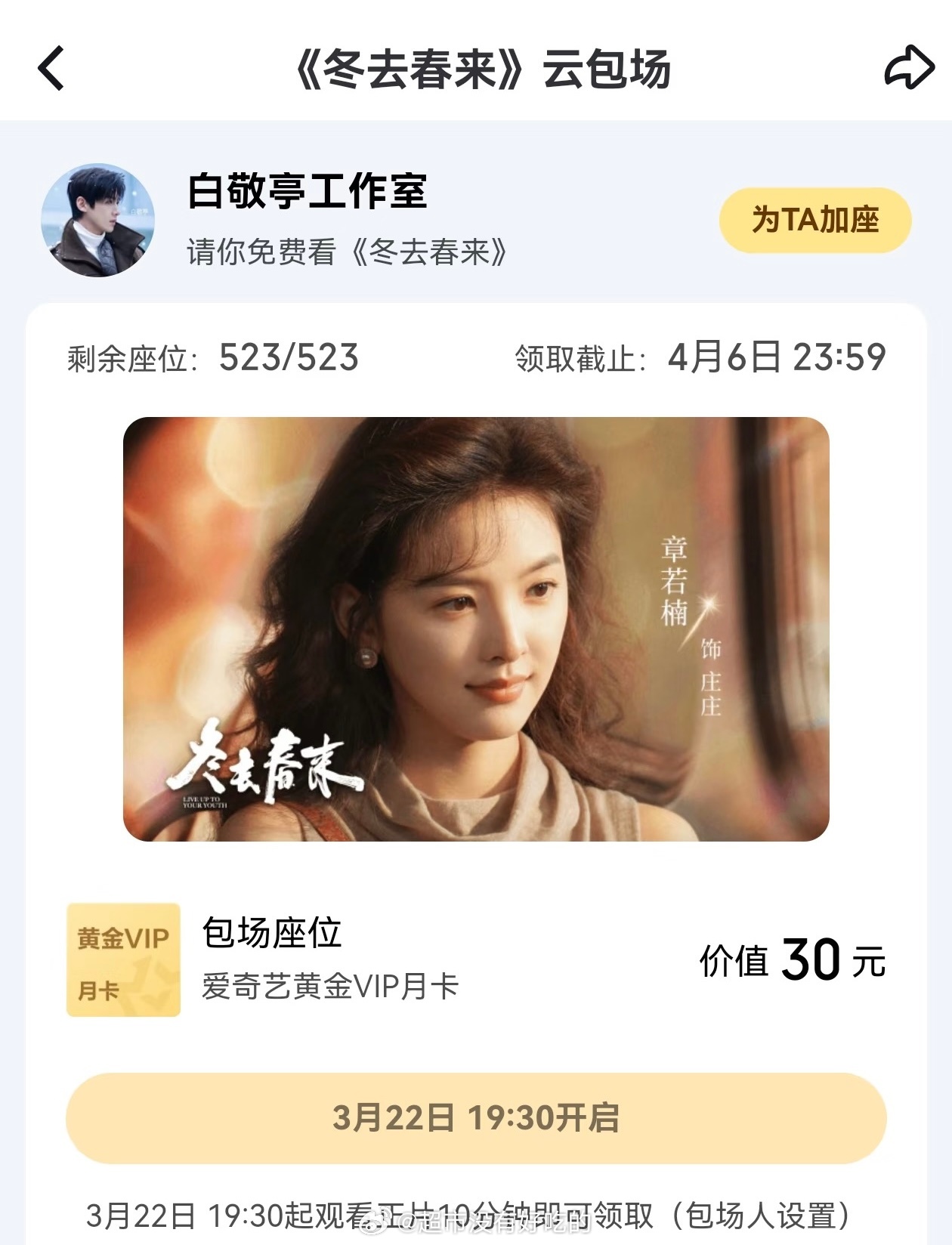 是顶顶好的白敬亭,小白包场了《冬去春来》给合作过的郑晓龙 高满堂老师包场 还单独