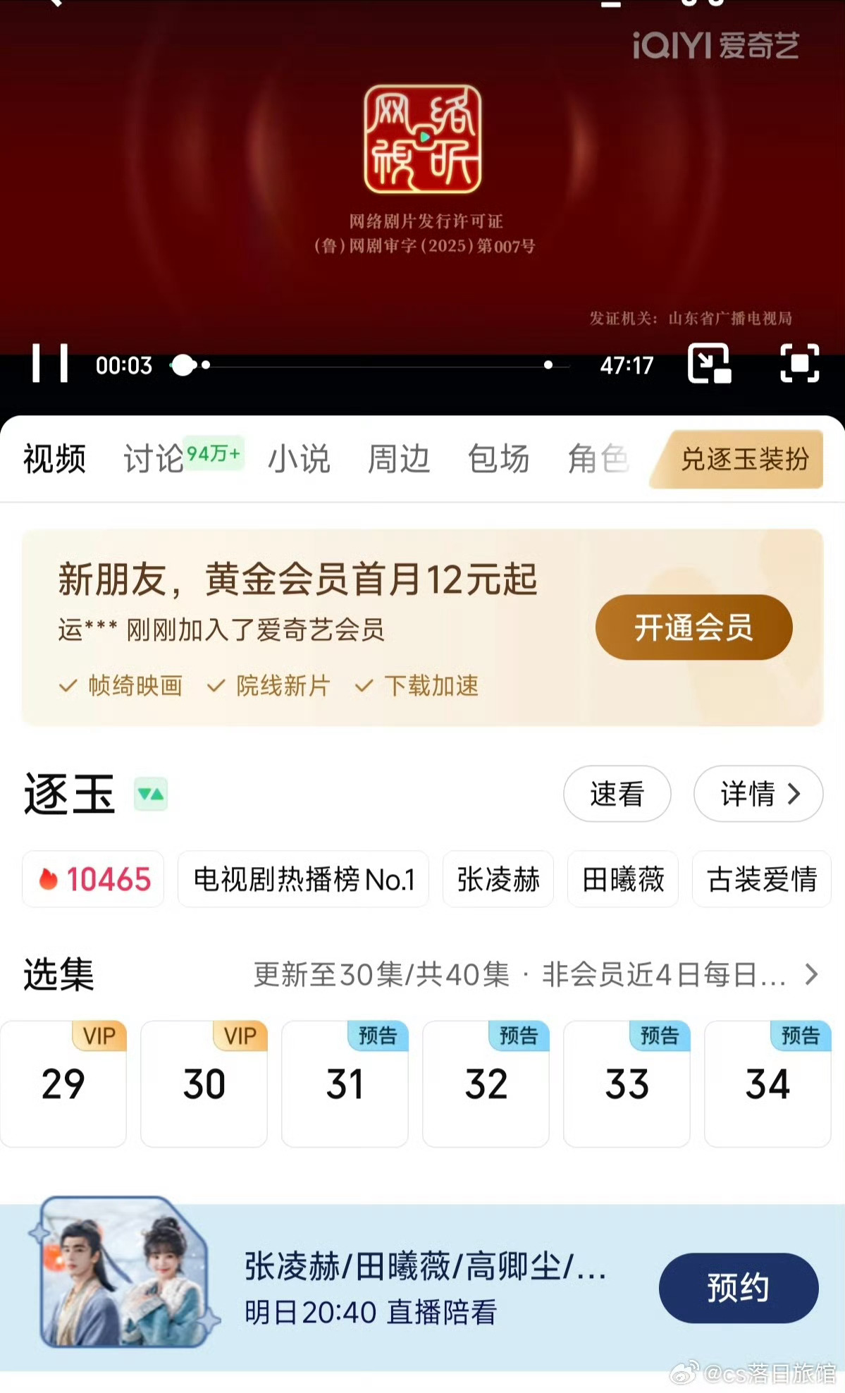 逐玉才更新到30集张凌赫田曦薇主演的逐玉才更新到30集,后面10集就被提前泄露了