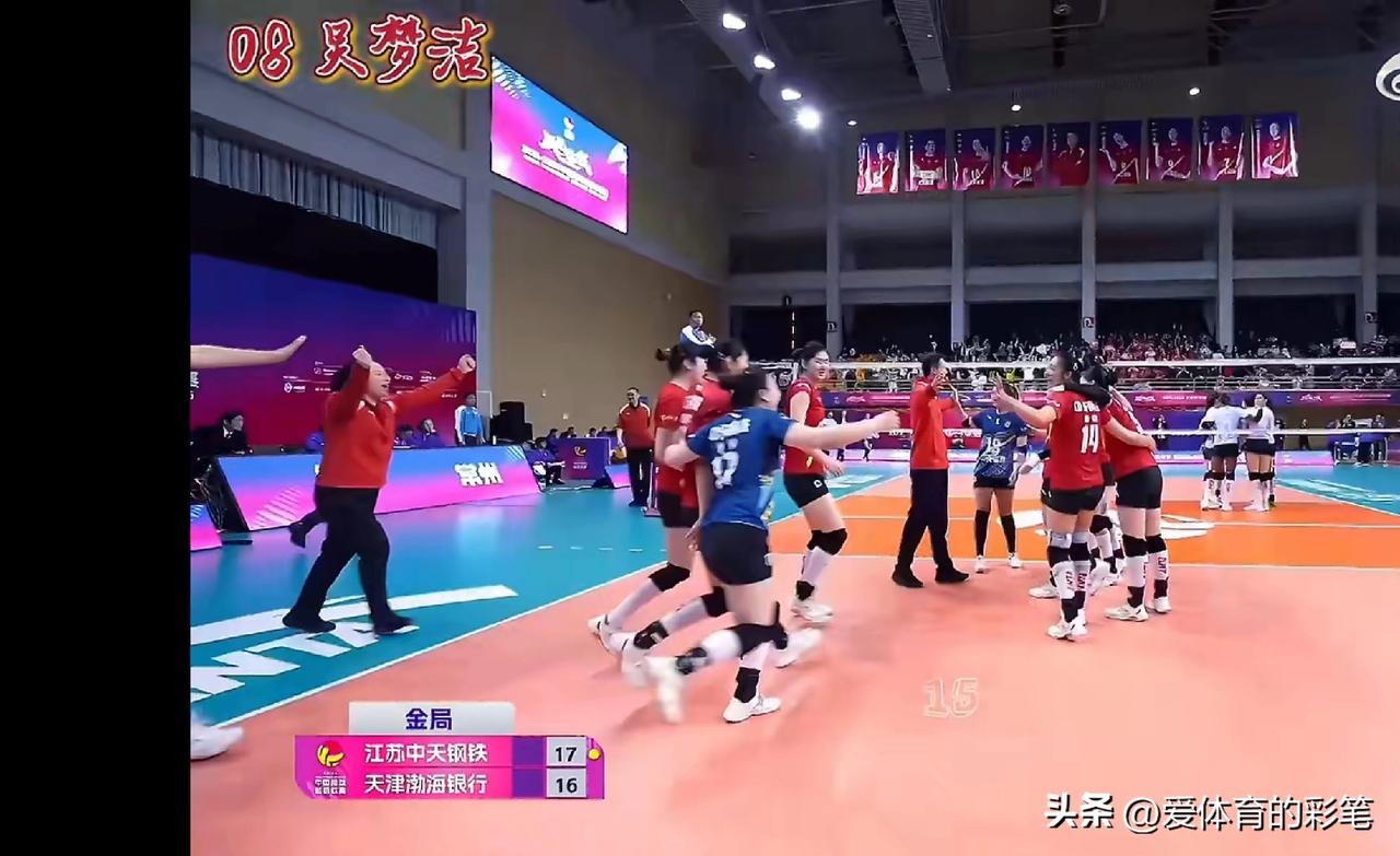 吴梦洁“呼”地蹦起来,这画面太激动人心了[呲牙],与天津女排金局16:16时,吴梦洁看杨艺垫球过网,猛地原地起跳,啪哒一声,把球牢牢摁死在对方场内,这观察力,这扣球速度,令人拍手叫绝[赞]。 更为称奇的是,她全场48扣22中6拦,拿到最高30分,其中金局独揽8分,可谓全面发挥,星光四射[赞],江苏女排晋级决赛真要感谢吴梦洁,一起期待与上海女排比赛,她打出更多精彩球,加油✊女排江苏队 天津女排名单 苏州女排 天津女排U20