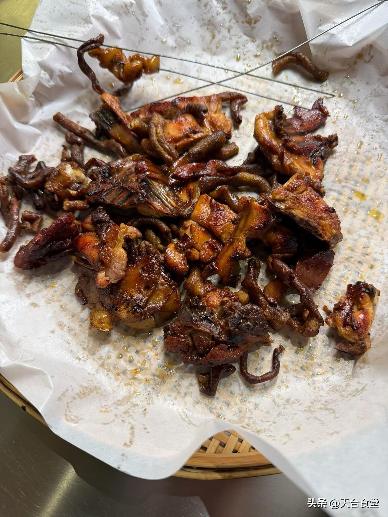 豆米火锅就是用红豆煮软后和高汤一起煮,我们点的是糟辣豆米火锅,绵密中带着酸香,口感沙沙的,其实不用点这么多菜这个泡饭都干你三大碗。 另一家老贵阳推荐的烤鸡,活鸡现烤不腌制,边烤边刷酱油整体一个咸,香口感,入口会有很强烈的焦香感觉,整体偏咸了,有点小贵 78 半只用的是三黄鸡烤的,整体干干的,会有那么一两块保留了一点点汁水。味道太单一烤鸡皮但是还可以属于焦脆带软的鸡皮油脂感比较明显。