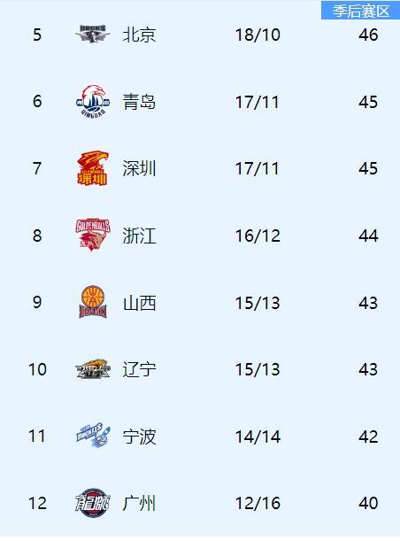 CBA第二十八轮比赛今晚全部结束,上海队和广厦队还是第一集团,广东队积分与前两名差距被拉开,后面还有山东和北京紧紧追赶。 上海、广厦、广东、山东前四名没有变化,北京首钢赢下辽宁队后积分与山东队相同,排名升至第五,青岛队和深圳队都是17胜分别排名第六和第七名。 浙江队16胜目前排名第八,山西队和辽宁队都是15胜,排名分别是第九和第十,宁波队14胜排名第十一,广州队12胜排名第十二。 季后赛边缘的球队中,北控、吉林、新疆、福建和同曦都有机会,CBA本赛季的竞争非常激烈,现在比赛中以弱胜强的比赛非常多,这就是外援人数多带来的好处。