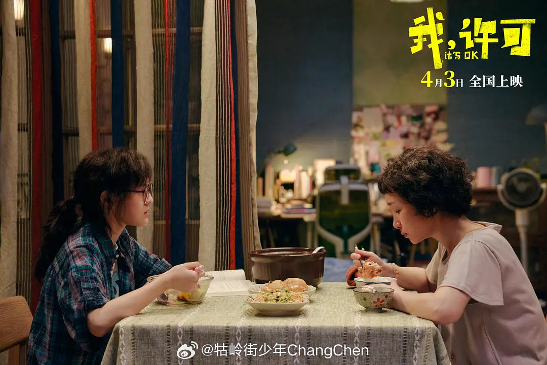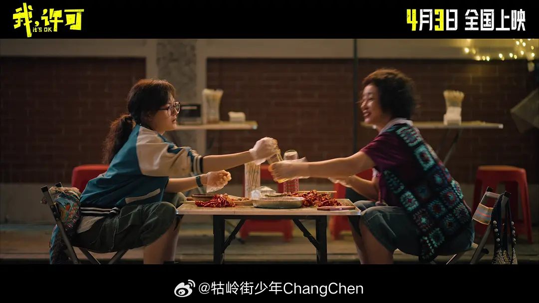 另外电影在探讨这对母女关系的处理方便也挺出戳中我。其实很多国产片里总喜欢塑造东亚母女那种“恨海情天”的纠缠,要么撕心裂肺,要么强行和解。《我,许可》不一样,它用更轻盈、更当代的方式去处理这份羁绊。许可没有选择跟妈妈对着干,而是带着她去做那些妈妈年轻时想做却没机会做的事:吃路边摊、去Livehouse、睡前夜聊、试小玩具!当妈妈在摇滚现场拿起话筒唱《梦田》、对来电的老公说我们离婚吧,那一刻胡春蓉不是谁的妈妈谁的妻子,她就是她自己,委屈了一辈子的胡春蓉终于开始学会爱自己了。