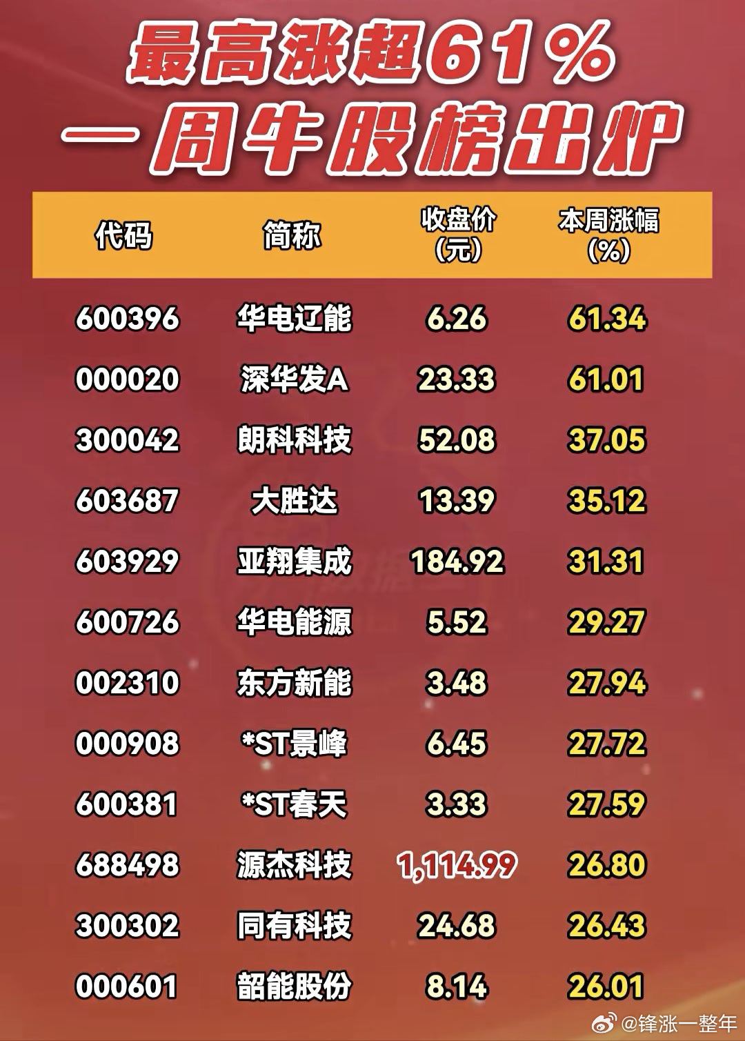 A股 本周,牛股榜