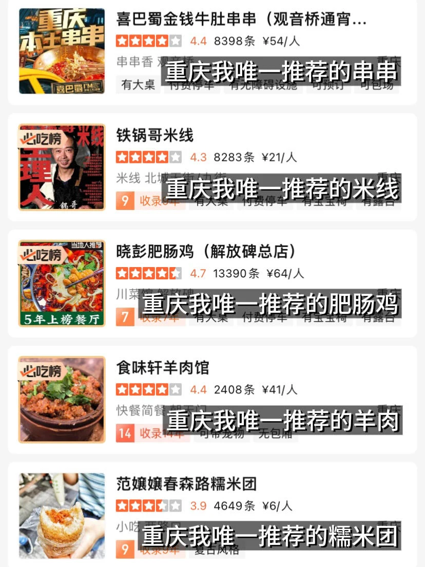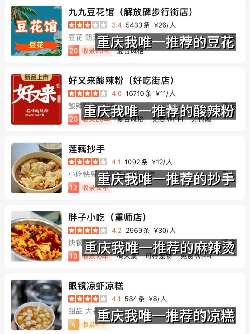 整理了一些无广清单!!重庆真的好好吃!!