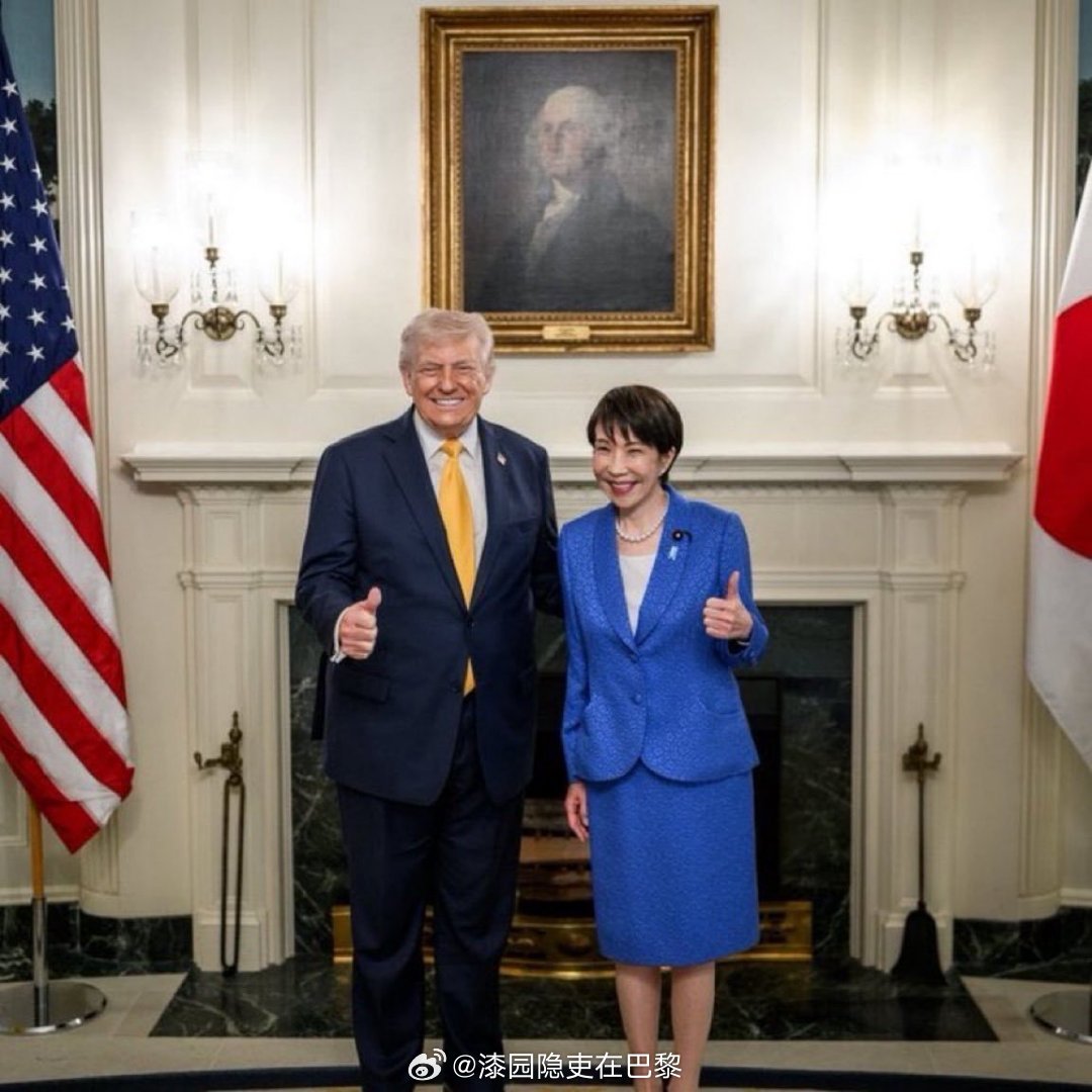 高市早苗与特朗普牵手同行 发生什么了?让高市这么高兴?