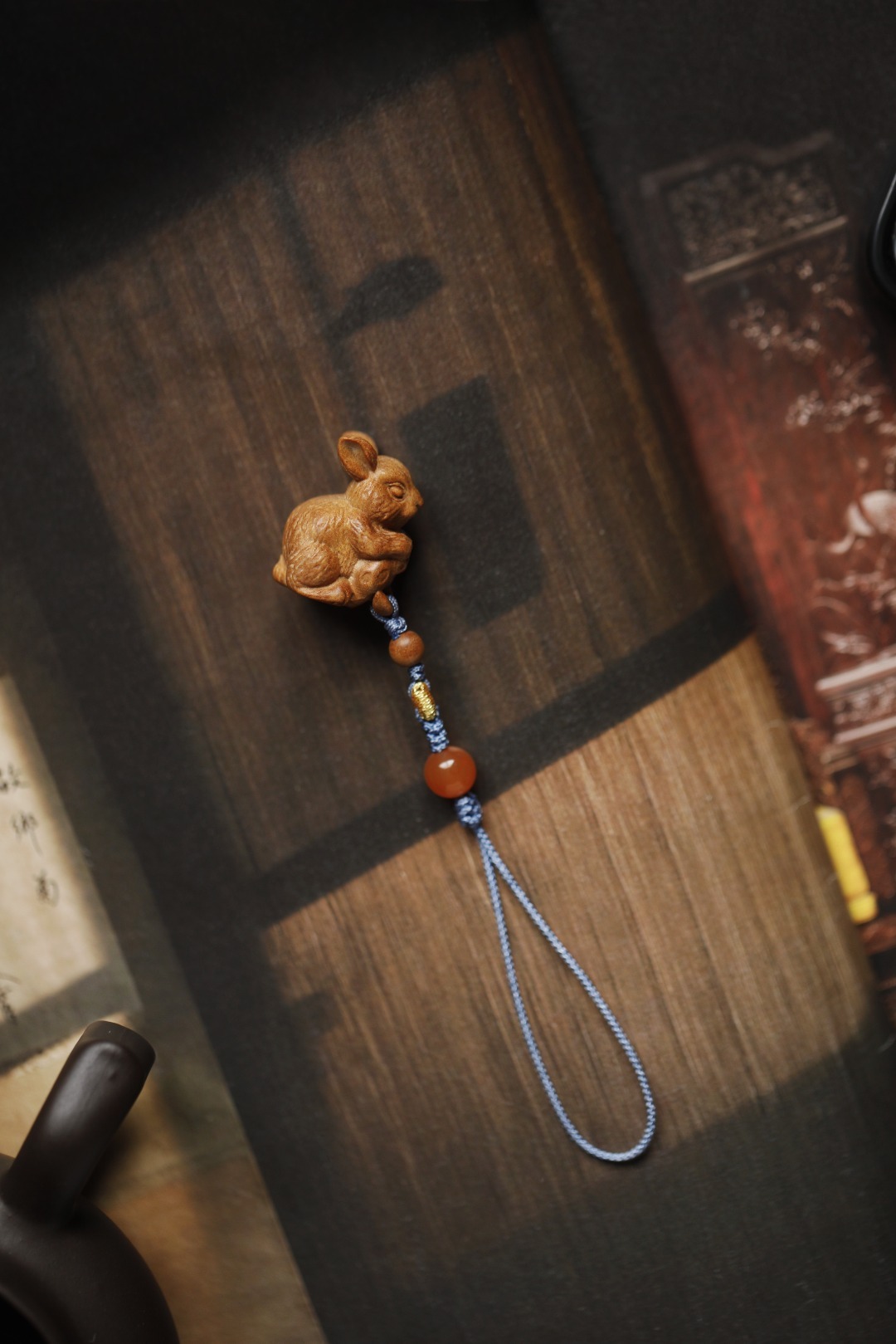 老山檀香【丰收兔】钥匙扣精工手作,香味醇厚;瑞兔姿态呆萌可喜,象征吉祥如意,合家