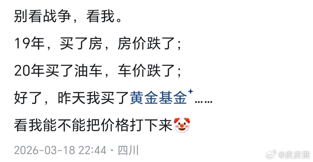金饰价格已下跌超300元一网友表示:19年买了房,房价跌了;20年买了油车,车价跌了;昨天买了黄金基金,看看能不能买价格打下来。