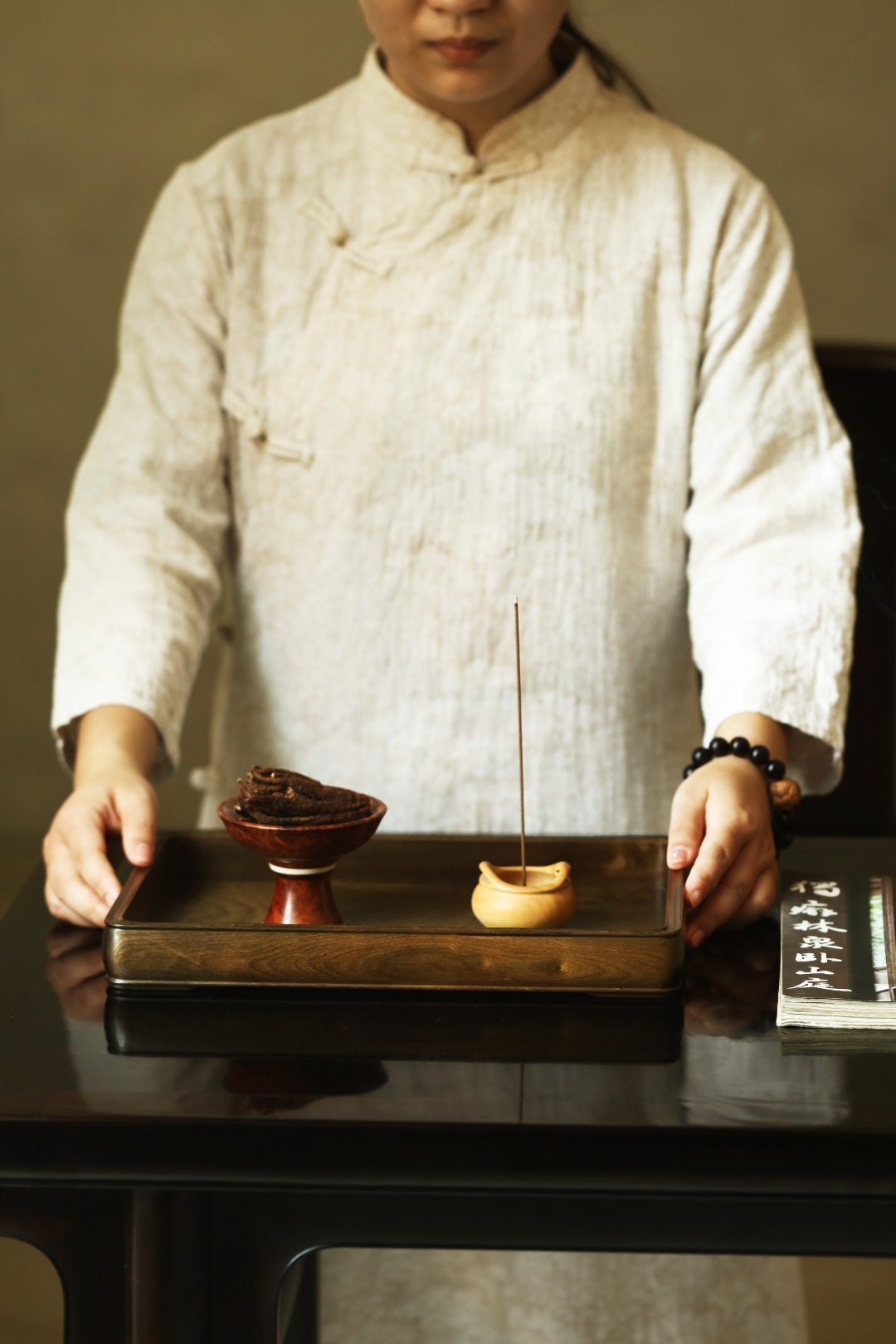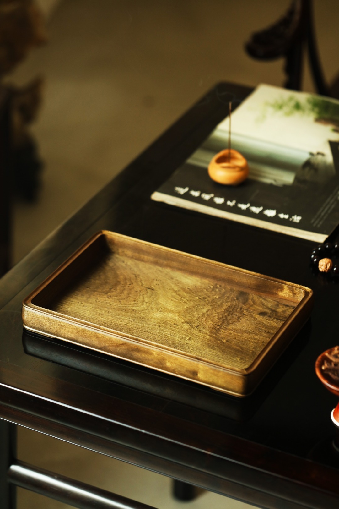 30.8*20.8*3.6cm 重363g 金丝楠 | 文盘 雨滴纹