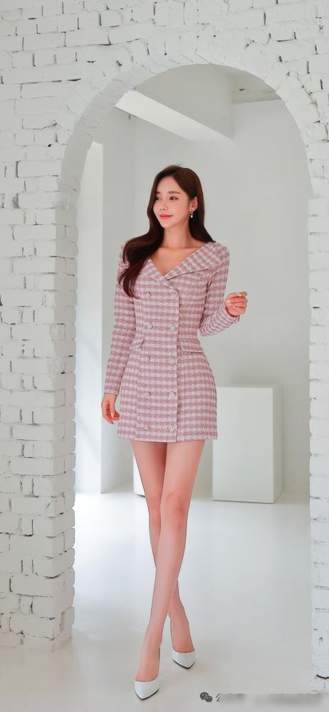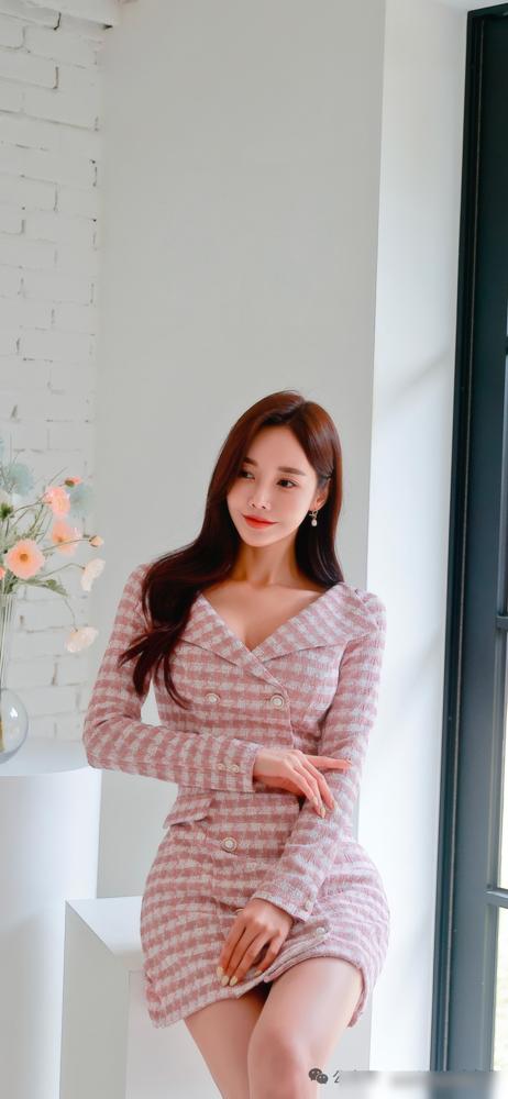 别再看那些流水线网红了,孙允珠一张照片就让3.2亿人瞬间失声。大家都以为这位初代天后已经过气,她却转身换上这套粉白格纹西装裙,用绝对的压制力告诉你什么叫南韩审美的定海神针。 你仔细看这件裙子的线条,笔挺的垫肩撑起气场,掐腰剪裁在呼吸间勾勒出顶级弧度。粉色与白色的交织完全没有廉价的甜腻感,反而透出一股利刃入鞘般的凌厉。她坐在大理石台阶上,哪怕只是一个简单的回眸,那种从骨子里溢出来的克制与舒展,就足以让所有模仿者原形毕露。 真正的顶级美感从来不是靠年轻,而是靠那种入木三分的自律。不是她在追逐流行,而是她在制造标杆。
