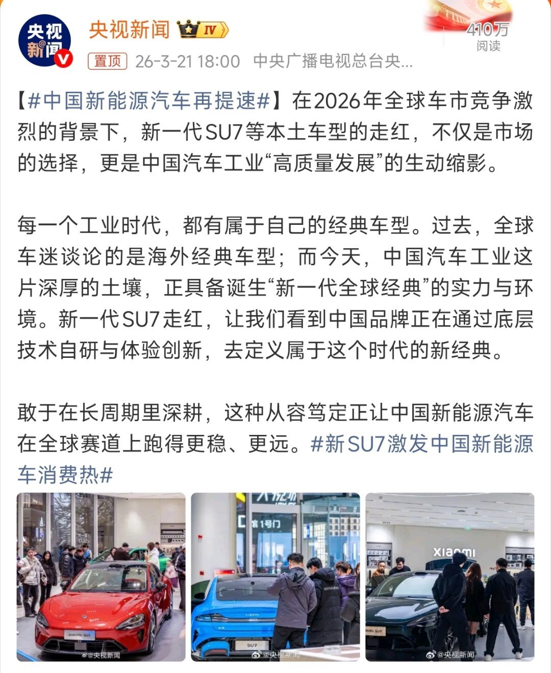 新SU7激发中国新能源车消费热中国新能源汽车再提速