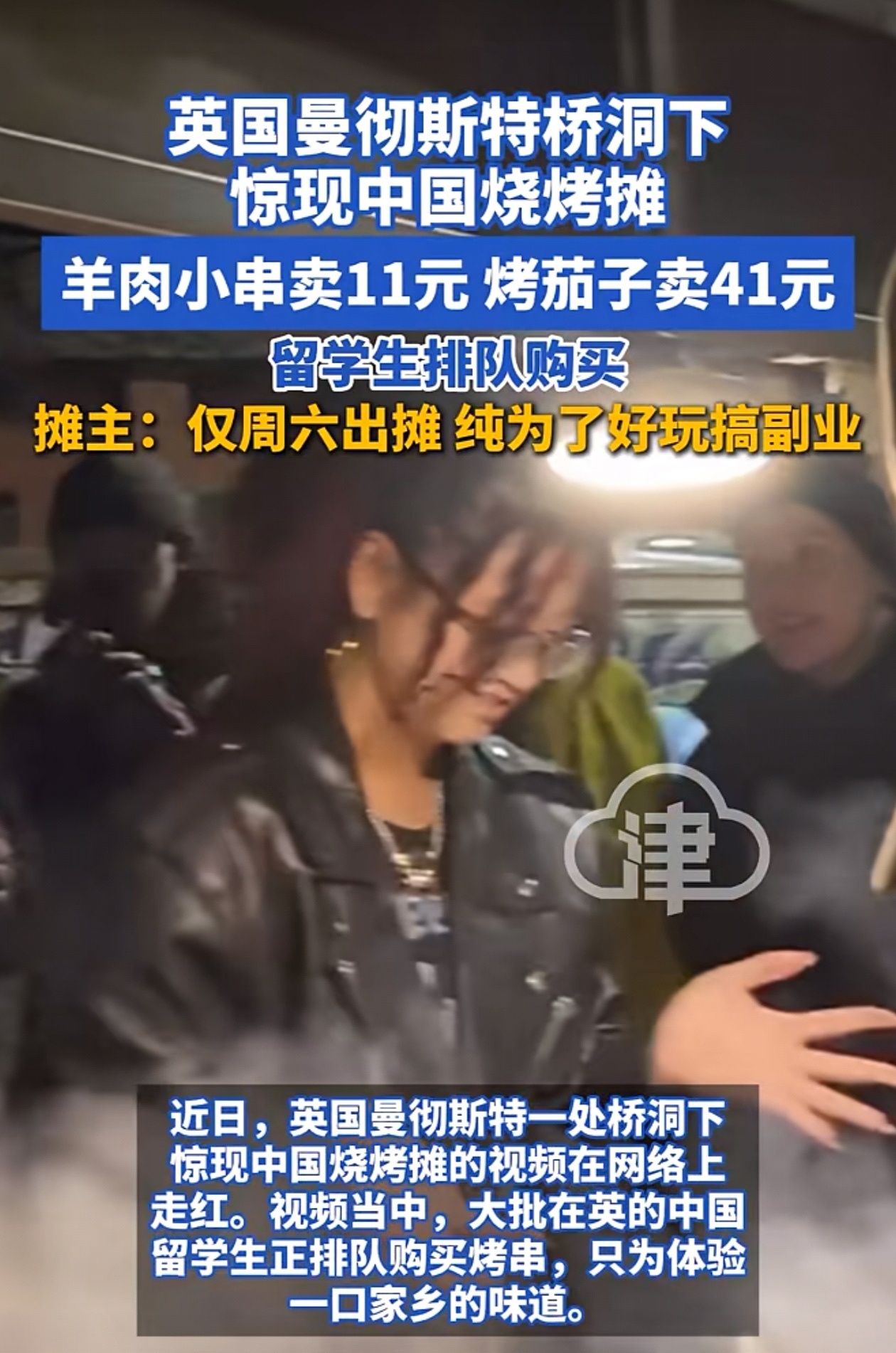 近日,英国曼彻斯特桥洞下惊现中国烧烤摊,深受留学生群体欢迎,从菜单价格来看,羊肉小串卖11元,烤茄子卖41元,素串比肉串还贵。据悉,摊主已低调摆了三年,属于团队副业,有当地摆摊正规手续,目前每周六晚上出摊,夏天生意更好,纯是为了好玩。英国曼彻斯特桥洞下惊现中国烧烤摊时事满谈