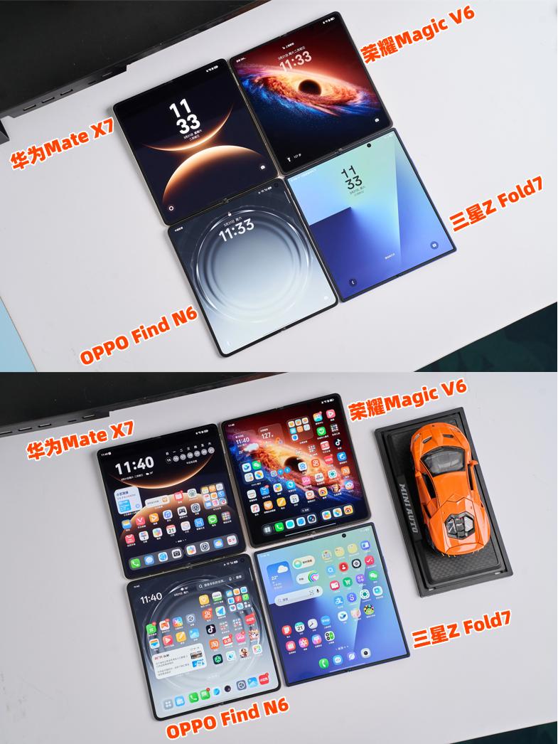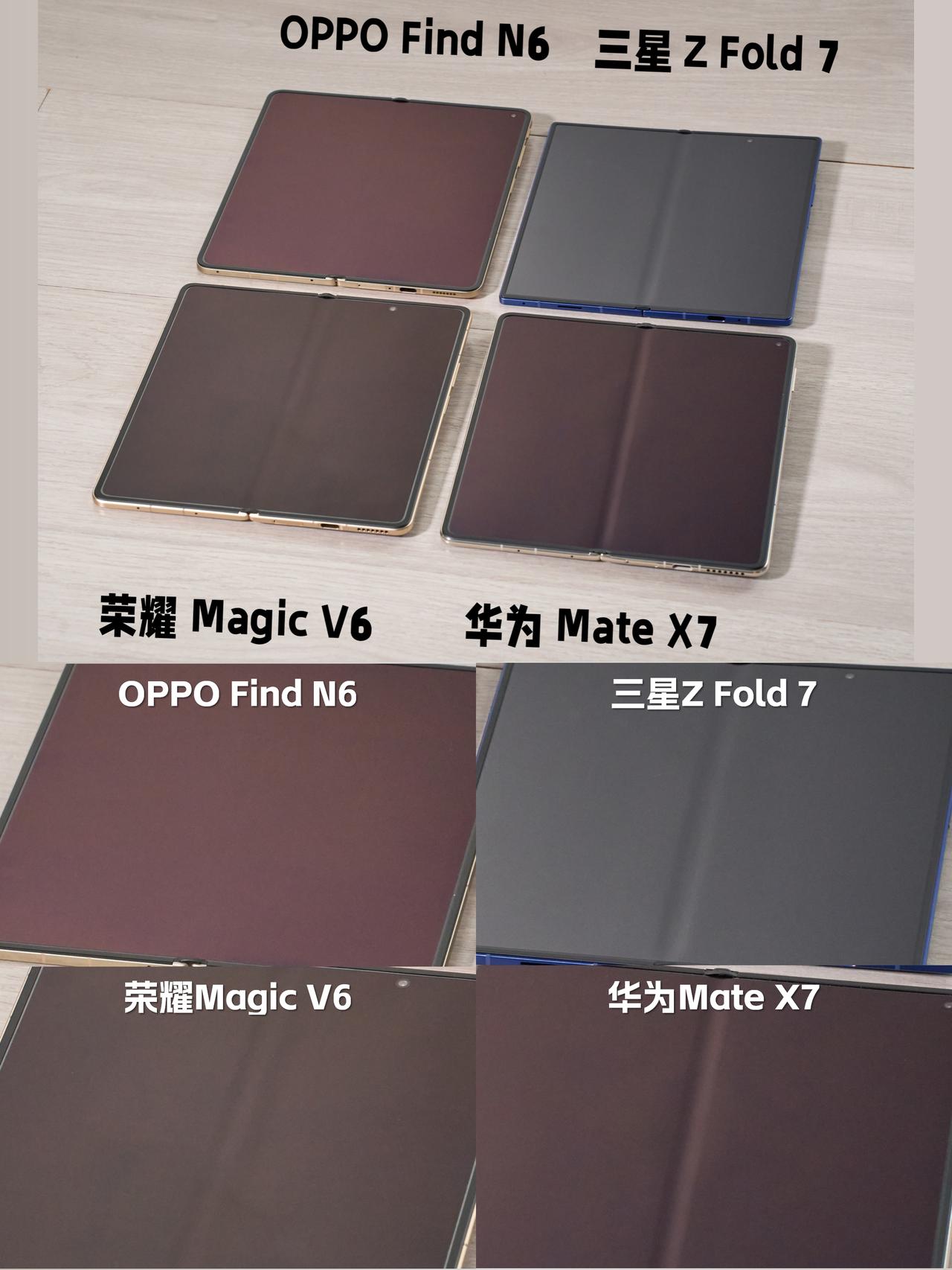 这四款折叠屏到底是什么人在用? 就我来看吧,很多人选华为折叠屏估计是因为在体制内工作,领导、长辈也比较喜欢用华为,用一样的牌子好融入圈子。 三星给人感觉比较时尚,很多韩剧的欧巴、欧尼也在用,追星族估计喜欢用他们同款吧。 荣耀和华为的绑定比较深,设计也接近,算是体制内平替。 OPPO Find N6很像一个完美主义者,外观有质感还比较时尚年轻点,而且折痕这块追求完美,几乎是看不到折痕,体验过的很多人说像平板。 除了折痕控制优秀外,Find N6其他配置很全面,影像上有独一档的2亿像素哈苏四摄,拍照清晰又有质感,软件功能很创新,新的全景自由屏把大屏的分屏、小窗玩明白了,小窗自由调节大小、摆放,还有手写笔,能用AI绘画创作,非常实用。目前N6已经开售了,不过首销蛮抢手的,据说1TB版本都卖断货了,有入手的吗? #折叠屏手机 #手机数码 #华为MareX7 三星ZFold7 荣耀MagicV6 OPPOFindN6 FindN6无感折痕 荣耀 OPPO 华为