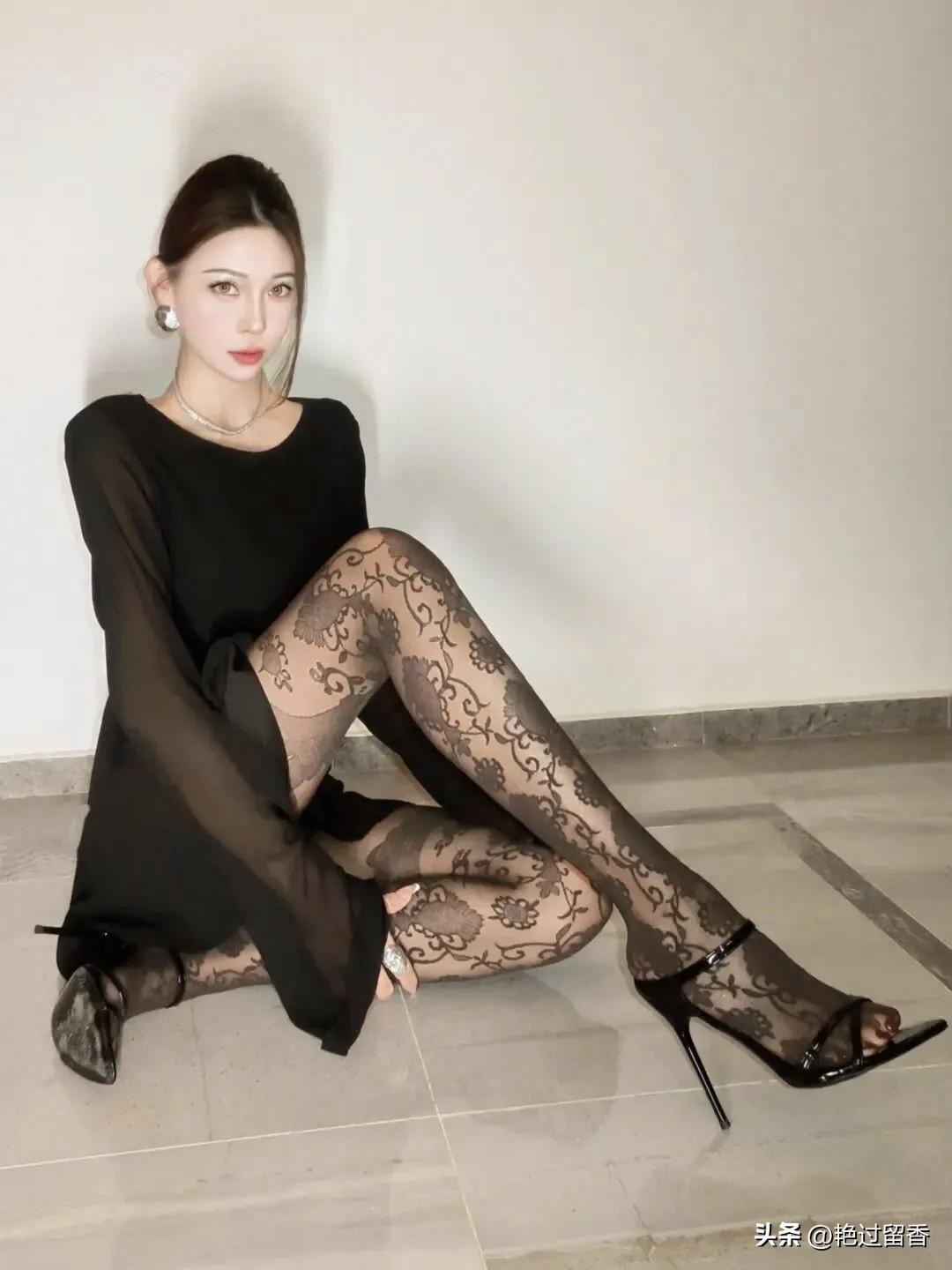 黑衣美人倚椅坐,花影摇曳似仙姿。