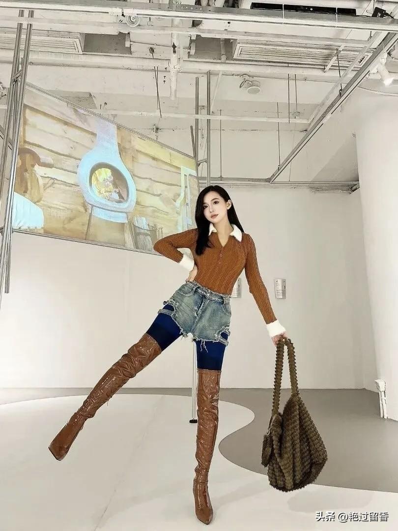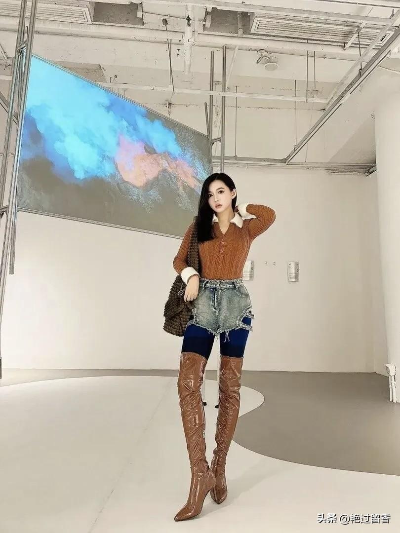 时尚穿搭指南:棕色毛衣+牛仔短裤+高跟靴,轻松打造都市潮女风!👗👠💃