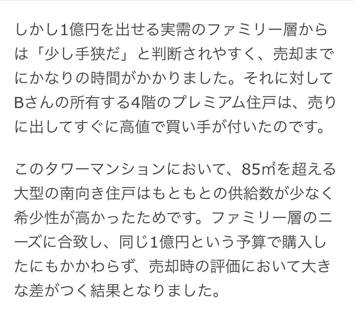 同等价格1亿日元买的塔楼,A和B数年后哪个更好卖? A.2LDK 65平方米 20层 朝北 B.3LDK 85平方米 4层 朝南