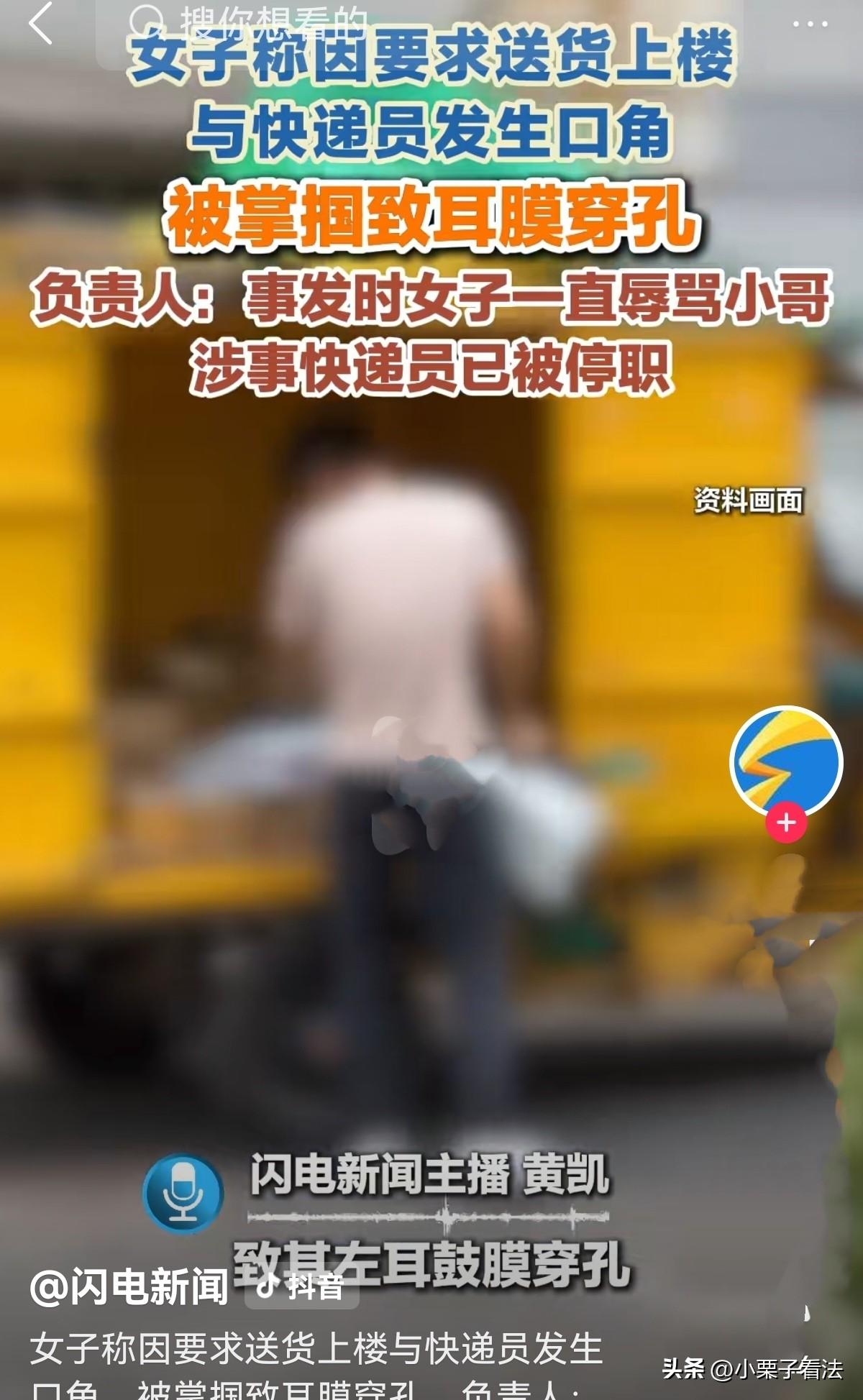 让三分能躲灾祸!江苏苏州,女子要求送快递送上门。快递员说:自己不认门,送至其他快递驿站可以吗?女子拒绝。快递员说:不下来取就原路退回。女子无奈下楼,两人发生口角至动手,其被掌掴确诊耳膜穿孔。女子崩溃的是,她遭受伤痛折磨时快递员还在上班。网点负责人:快递员不熟悉区域,才让她下楼自取,不取退回是正常流程!她一直辱骂小哥没忍住!现已对快递员停职处理!网友:一直辱骂,可以默认为找打吗? 2026年2月末,陈女士怎么也想不到,一次再平常不过的取件,会让她陷入身体与精神的双重煎熬。 2月28日那天,她正忙着处理手头琐事,一通快递员的来电,打破了午后的平静。 电话那头,快递员的语气带着几分急躁,直言自己对这片小区的楼栋布局不熟悉,要求陈女士下楼取件。 陈女士愣了一下,平日里多数快递都会送货上门,她便客气地提出希望对方按地址送到家中。 可快递员的回应却带着强硬的意味,称若不下楼,便直接按流程退回快件。 这句强硬的话,让陈女士心里很不舒服,她觉得自己被变相威胁了。 看快递员不容商量的态度,又要将快件被退回,陈女士只能压下心头的火气,匆匆放下手中的事,快步下楼。 走到单元门口,陈女士的不满再也藏不住。她想着自己配合下楼取件,已是做出了让步,便忍不住对着快递员抱怨了几句。 起初只是几句争执,双方都带着情绪,语气越来越冲。 快递员本就因家中琐事心烦意乱,连日的派件压力加上私事缠身,让他本就处于情绪紧绷的状态。 陈女士的抱怨在他听来格外刺耳,他反复提醒对方不要再骂,可争执中的两人都被情绪裹挟,谁也不肯退让。 就在争吵愈发激烈的瞬间,快递员彻底失控,上来推倒陈女士,对她进行了掌掴。 陈女士被打得眼冒金星,耳朵里嗡嗡作响,一阵尖锐的疼痛从左耳蔓延开来,左耳瞬间失去了听觉。 她捂着脸,又惊又怒,怎么也不敢相信,一次取件纠纷,竟会演变成暴力伤人。 回过神后,陈女士立刻拨打了报警电话,随后在家人陪同下赶往医院检查。 经过专业诊断,结果显示她左耳外伤性鼓膜穿孔,需要静养观察,后续还要根据愈合情况做伤情鉴定。 拿着诊断报告,陈女士又气又怕,她联系快递公司客服讨要说法,可客服仅让她等待警方处理,没有给出任何实质性的回应与解决方案。 网点负责人及涉事快递员当晚虽致电道歉,但敷衍的态度让陈女士无法接受。 事发20多天里,陈女士一边忍受着耳部的疼痛与听力障碍,一边等待伤情鉴定结果。 让她心寒的是,涉事的快递员依旧在正常上班,没有受到任何处罚。 直到事件闹大,媒体介入后,网点才改口称已将其停职。 网点负责人向记者解释时,将责任推给双方,称快递员是因不熟悉区域才让陈女士下楼取件,说不拿就退掉是正常业务流程。 陈女士持续辱骂快递小哥,再加上他家中有事,才导致情绪失控,可能没忍住就动手了!才发生冲突。 负责人表示:目前,涉事快递员也已经被停职。 这场闹剧,原本只是快递派送的小事,却因双方的情绪失控,酿成了伤人的悲剧。 从法律层面来看,送货上门本是快递服务的法定义务。陈女士明确要求送货上门,符合法定权利。 快递员以“不熟悉区域”为由拒绝上门,并以“不下来就退回”相要挟,未经同意擅自要求下楼取件,违反《快递暂行条例》第25条与《快递市场管理办法》第28条第3款,属于违规投递。 快递企业需将快件投递到约定地址,未经用户同意,不得擅自投放至快递柜或服务站。 陈女士下楼取件,不代表其认可快递员的违规行为,更不构成辱骂在先即免责理由。 《民法典》第1191条第1款:用人单位的工作人员因执行工作任务造成他人损害的,由用人单位承担侵权责任。 用人单位承担侵权责任后,可以向有故意或者重大过失的工作人员追偿。 快递员在执行派件工作任务中伤人,快递公司网点需承担陈女士医疗费、误工费等赔偿责任,而后可向快递员追偿。 网点未及时处理投诉、未及时停职,并在事后推诿责任,违反服务合同与监管要求。 陈女士可向相关部门投诉,要求企业承担行政责任与民事赔偿。 快递员 掌掴行为,无论起因均属违法,属于故意伤害他人身体。 若陈女士的鼓膜穿孔经鉴定6周未愈合,达到轻伤二级标准,快递员还将涉嫌故意伤害罪,面临刑事处罚。 有人说,取消快递送货上门迫在眉睫,几毛钱送货上门谁愿意,而且严重超负荷送件,根本送不过来! 有人说,双方都没错。买家要求送货上门合理合法。可快递员的快递单价和时间不允许送货上门。 还有人说,骂人不对只是道德问题,而打人是触犯法律的,任何时候都要管理好自己的情绪,情绪失控的代价,终究要由自己承担。 对此您怎么看?