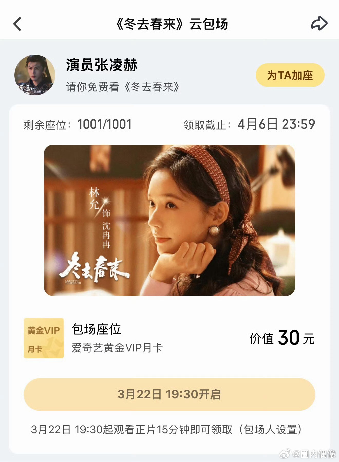 张凌赫包场冬去春来张凌赫直接包场《冬去春来》2000座,诚意满满!暖心支持好友新