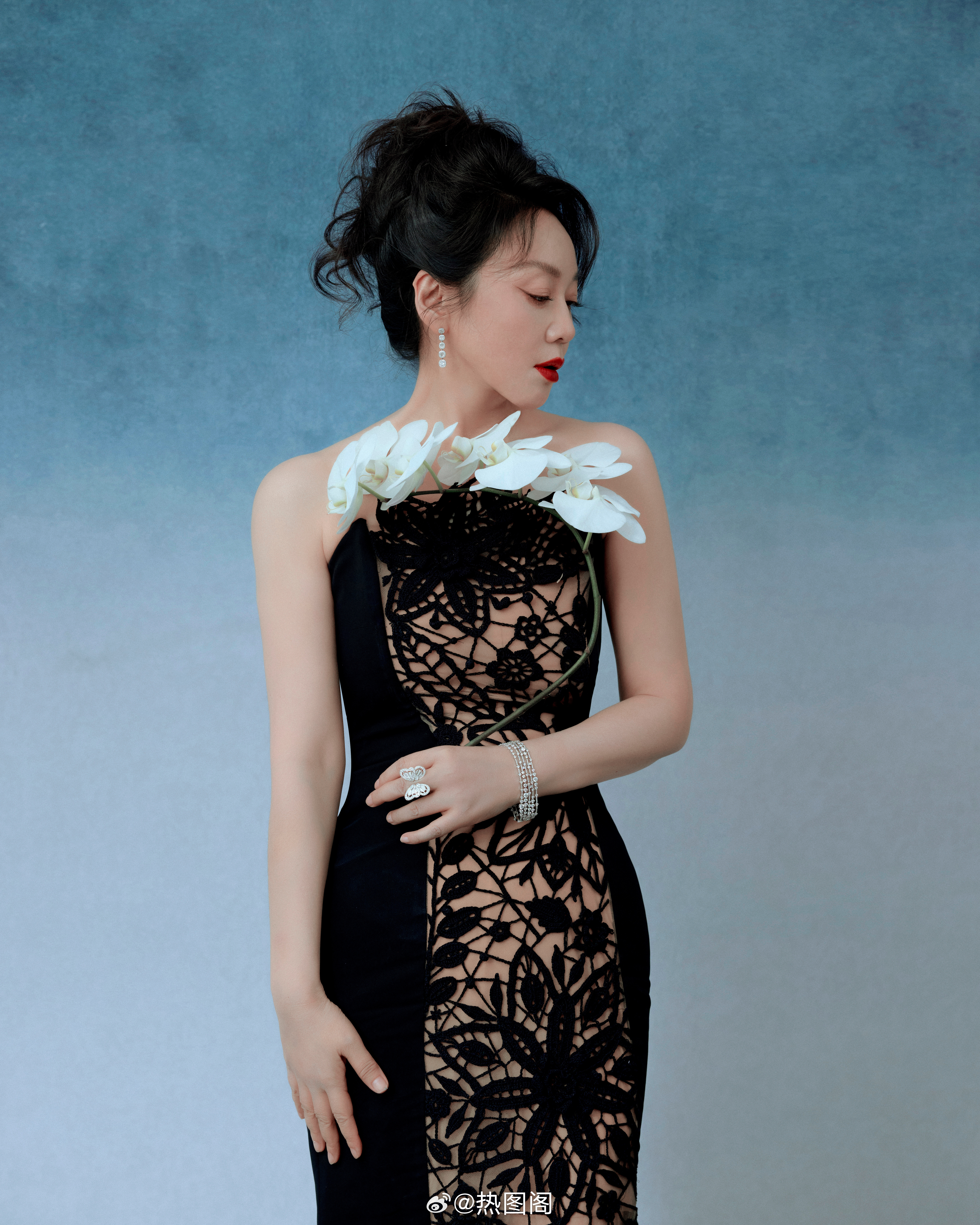闫妮 雾蓝垂落肩头,是慵懒的撩人;黑丝蕾丝覆身,是致命的诱惑,一颦一笑间,将成熟