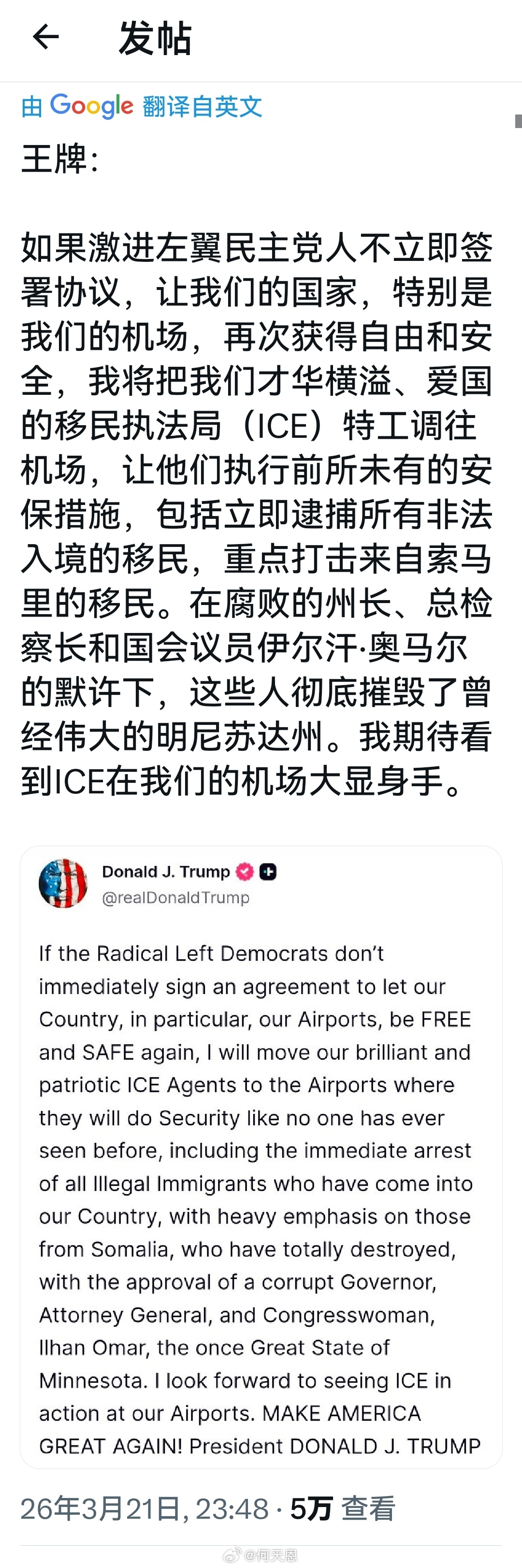 这次必须支持一下懂王,内战搞起来。海外新鲜事何天恩