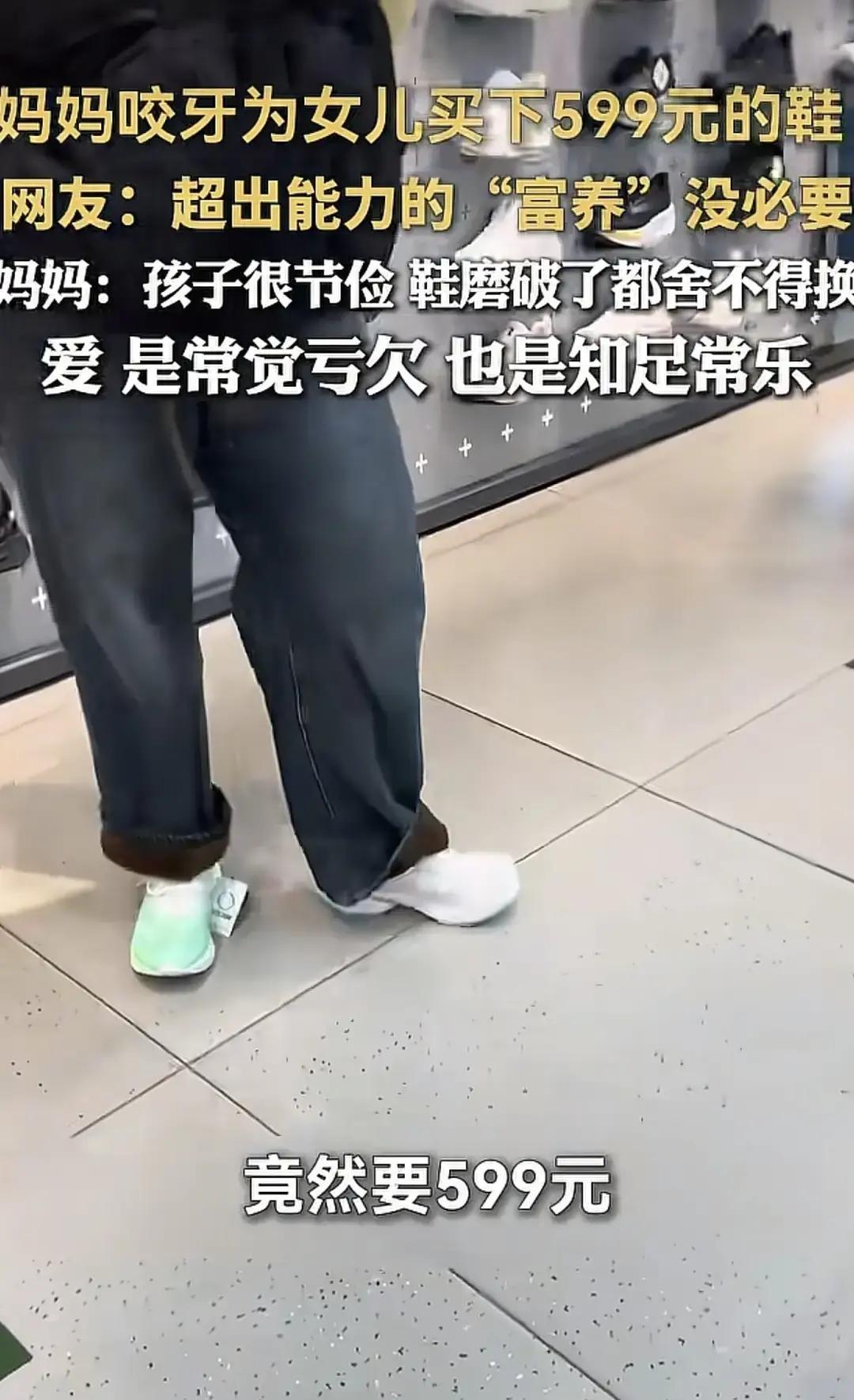 威海妈妈带着俩闺女逛鞋店,大女儿一眼相中那双599的小皮鞋。 我坐在店门口台阶上刷手机,看她来回踱步半小时,手机计算器按了又关。 最后抹把脸进去砍价,539成交。 没听见一句抱怨,反而领着孩子直奔隔壁面馆点了三碗牛肉面。 小姑娘把旧运动鞋塞进塑料袋,新鞋直接穿脚上,走路都踮着脚尖。 她妹妹啃着卤蛋说姐姐像公主,妈妈笑着揉她头发,眼角褶子堆成小山。 五百多块够我家半月菜钱,但那一刻突然懂了。 有些爱不靠打折体现,它藏在母亲转身时偷偷松的那口气里。