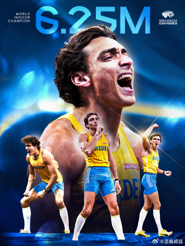 室内世锦赛杜普兰蒂斯四连冠破赛会纪录 男子撑杆跳一大场面首次出现!