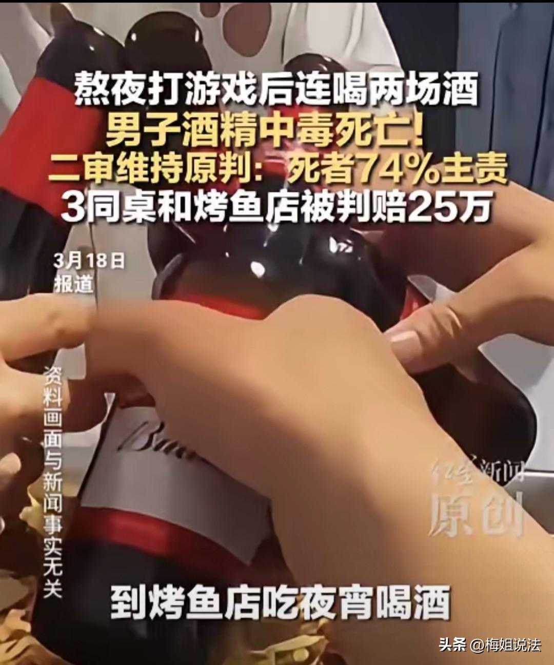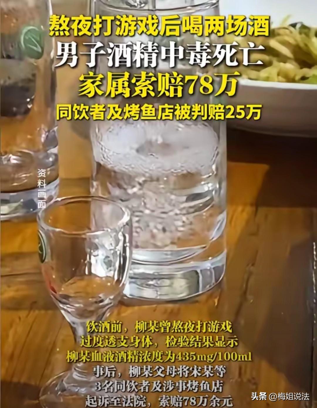 离了个大谱!云南丽江,男子熬夜打完游戏被朋友叫去喝酒,连喝两场后,在烤鱼店醉得当众小便,没多久就因酒精中毒离世。这时候,男子家属将一起喝酒的人起诉了。但万万没想到的是,除了涉事的人外,烤鱼店居然也被牵连赔了20000元! 去年5月,柳某刚熬了个通宵打游戏,还没来得及好好休息,就被朋友宋某、李某等人喊去出租屋吃饭喝酒。 几人喝了一顿之后,柳某又被彭某叫去烤鱼店吃饭。 其实,这时的柳某已经喝得有些糊涂了,但在朋友的盛情邀约下,还是高高兴兴地跟着宋某赴了约。 几人在烤鱼店内一顿胡吃海喝,气氛很高,又叫了不少酒,其中4杯荞花香白酒,12瓶红牛,14瓶劲酒,没一会就被几人喝了个精光。 喝完这一轮后,柳某表示自己喝不了了,直接趴倒在桌上了。 其他人见状没有多想,任由柳某趴在角落处,继续喝起了新的一轮。 他们喝得实在太高兴了,似乎完全没注意到柳某当众小便了起来,可能也有注意到的,但在酒精的麻痹下,所有人的反应都很迟钝,没有考虑到要去问一句柳某是不是身体不舒服,要不要先送他回家。 其他人只是看了他一眼,见他很快就晕在了桌上,又立马喝开了,完全没考虑到会有什么后果。 几个人喝到了凌晨6点,酒局终于结束了,彭某结账后,和唐某一起离开了烤鱼店。 只有宋某没走,他虽然坐在柳某旁边,可对于趴在桌上的柳某,他一直没有看一眼,只是在自顾自地刷手机。 谁想到没过一会,柳某突然出现抽搐,就连喝的那些酒水也吐了出来,然后很快就又晕倒在了桌上,不省人事。 烤鱼店店员看到后,吓得当即拨打了110。 不过十分钟的时间,民警到达现场,接着120急救人员也随后而到,直接对倒在桌上的柳某进行抢救。但可惜的是,人还是没抢救过来,柳某离世了。 根据检查,柳某的血液中酒精浓度为435mg/100ml,妥妥的就是酒精中毒。 柳某的父母难以接受这个结果,当即就把涉事的宋某、彭某、唐某,甚至是烤鱼店一起告了。 一审认为,柳某作为具有完全民事行为的成年人,应该对自己身体的健康状态有所了解,在这次意外中,应当负主要责任,所以他自承担74%。 而对于赔偿责任,宋某承担15%,折合成人民币,外加上精神抚慰金,一共156143元。 彭某承担5%,最后需赔偿42214元。唐某承担4%,需赔偿31572元。 而烤鱼店承担2%责任,一共需赔偿20786元。 虽然宋某、彭某、唐某对于一审判决表示不服,提出上诉。可二审还是驳回了上诉,维持原判。 有很多网友不理解,烤鱼店只是提供了酒水,为什么也要对此次事故承担这么大的责任呢? 根据《民法典》第一千一百九十八条规定,餐馆等经营场所的经营者,未尽到安全保障义务,造成他人损害的,应当承担侵权责任。 烤鱼店作为餐饮经营者,没有及时关注到客人的饮酒动态、导致到了未能及时采取救助措施,所以理应承担一定的赔偿责任。 当然,作为柳某的朋友,宋某等人在刘某喝醉时没有及时劝酒。而且在他醉酒后多次趴桌,甚至当众小便后,依旧没有对他采取任何关注措施。 其实也违反了《民法典》第1165条的规定:行为人因过错侵害他人民事权益造成损害的,应当承担侵权责任。 在本案中,宋某彭某唐某作为同行者,应当承担起劝阻、救护等责任。 其中宋某在两次喝酒过程中作为唯一在场的人,是一行人中比较清楚柳某情况的人,而且在事故发生之时也一直在场,可他却在朋友抽搐的时候就在旁边看着,也没有让他及时就医,理应对此次事故负有的责任更大。 可不管怎么说,这事真是令人唏嘘,本来高高兴兴地聚在一起喝了两场酒,没想到就这样人没了,不管最后赔偿了多少钱,但生命也回不来了。 所以说,在酒局上,看到朋友喝多了,不管情谊多浓,为了他的生命健康,该劝还是得劝,不然再发生这种事就追悔莫及了!