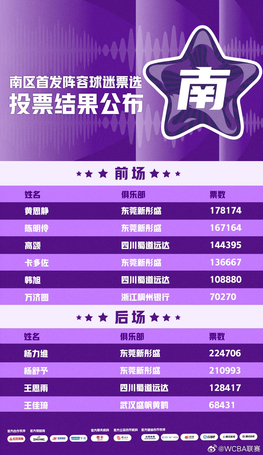 今晚WCBA全明星正赛应该是南区获胜 南区全明星阵容:本届票王杨力维、杨舒予、黄思静、陈明伶、高颂(首发五位) 万济圆、王思雨、娜塔莎·霍华德、王佳琦、唐子婷、刘禹彤、彭诗晴(替补7位) 北区全明星阵容:北区票王武桐桐、罗欣棫、翟若云、张茹、王丽丽(她是上上上届全明星MVP) 北区替补阵容依次是郑茗、曹君伟、张曼曼、陈玉婕、卡拉尼·布朗、方卓雅、许晨妍(她是上一届全明星MVP) 而我之认为是南区获胜,因为在国内赛场上,杨力维、杨舒予、陈明伶这几人的得分稳定性很不错的,尤其是这种带着一些娱乐性质的比赛,她们表现的更加出色,加上南区还有有内线大中锋刘禹彤在那,总体比起北区阵容还是要稳一点!