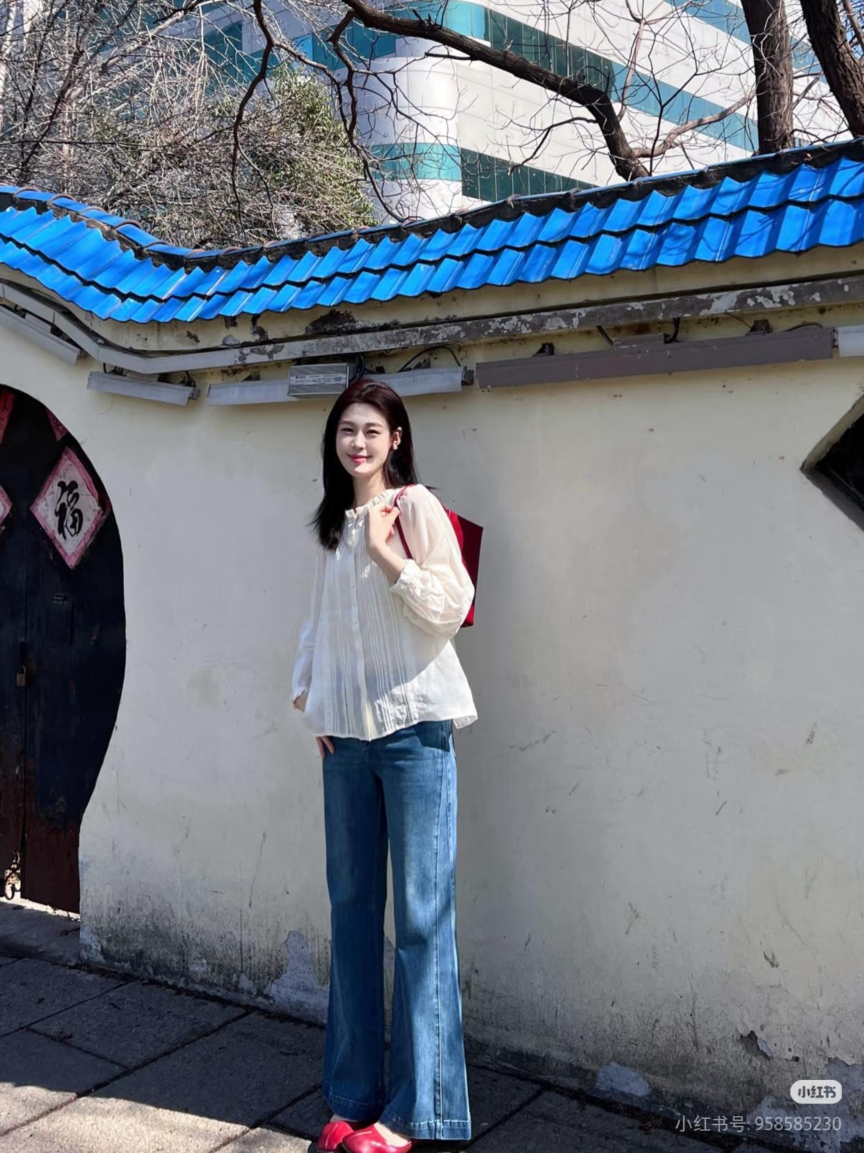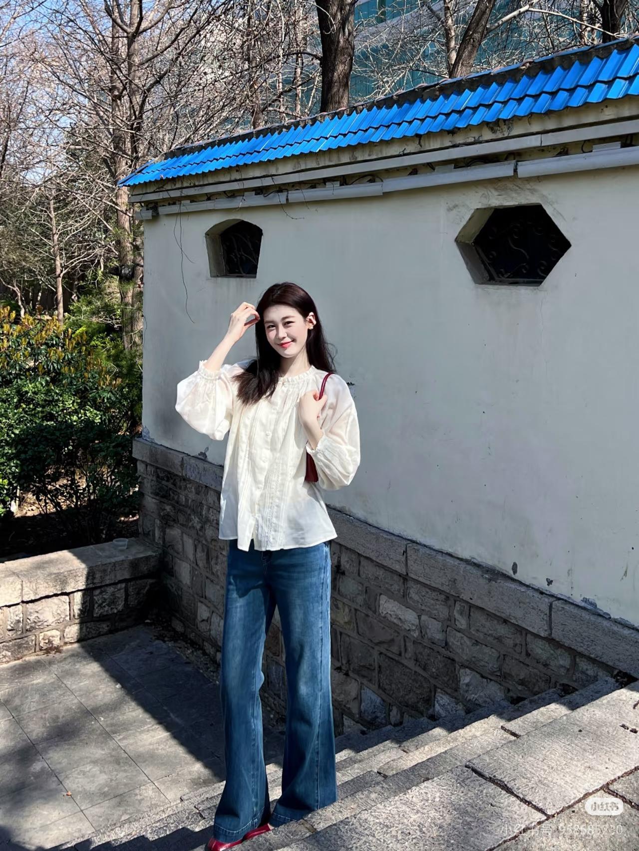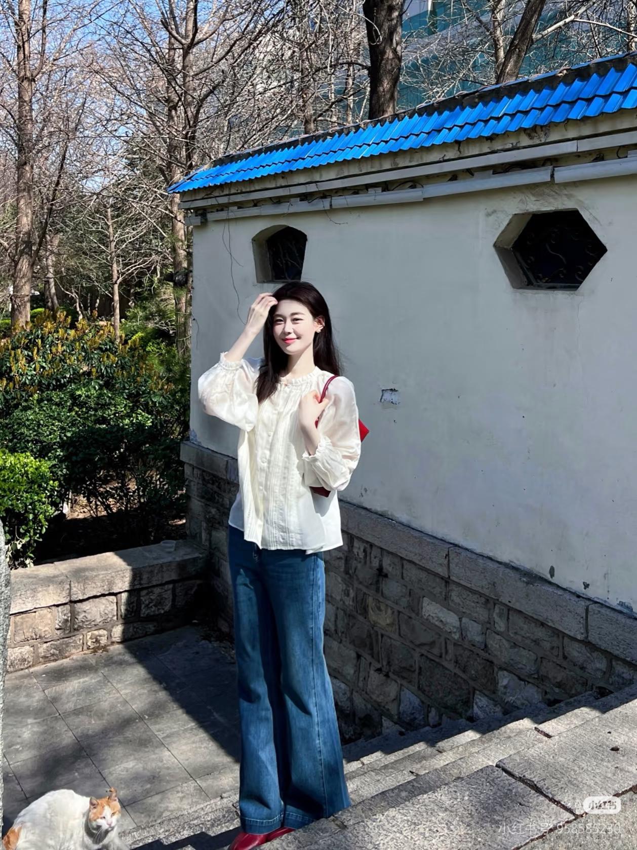 绿树掩映中,佳人倚墙笑。