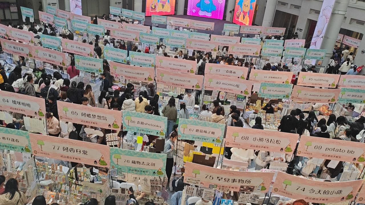 这里很多摊位,卖一些贴纸、文具、卡片,感觉都是小孩子喜欢的东西,怎么吸引了这么多人。