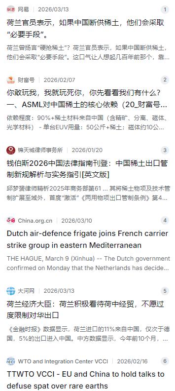 荷兰曾扬言“硬抢稀土”?荷兰官员表示,如果中国断供稀土,他们会采取“必要手段”。这口气让人想起几百年前那个,靠航海抢劫起家的荷兰。 麻烦看官老爷们右上角点击一下“关注”,既方便您进行讨论和分享,又能给您带来不一样的参与感,感谢您的支持! 前阵子有个新闻挺有意思,说荷兰那边有官员放出狠话,如果中国真的对稀土断供,他们就要采取“必要手段”来回应。这话听起来调门很高,但结合现在的全球供应链格局,总给人一种穿越回十七世纪、那个荷兰商船拿着刀满世界跑的感觉。只不过几百年过去了,现在的荷兰手里拿的不再是火枪,而是光刻机,可面对的资源困局,似乎比那时候更棘手。 要说这件事的起因,还得追溯到2025年秋天。当时荷兰政府干了件挺硬气的事儿,为了迎合美国在芯片领域的限制政策,他们翻出了一部上世纪冷战时期的老法《物资供应法》,直接把中资背景的芯片公司安世半导体给接管了,不仅冻结了资产,还把中方高管给撸了下来。这招显然是想向老大哥纳投名状,展示自己封锁中国的决心。 但荷兰人可能没仔细算过一笔账,在他们动手之前,中国商务部刚发了一个第61号公告,对含有中国成分的稀土相关物项出口做了新规定。这个规定如果落地,那可不是闹着玩的,它画了一条极其敏感的红线——0.1% 。意思就是,不管你在世界哪个角落生产的玩意儿,只要里面含有哪怕0.1%的价值是来自中国出产的稀土,再想往外卖,就得先跟中国申请出口许可证。 这一下就捅到荷兰的肺管子上了。别看荷兰的ASML在全球半导体设备圈里是天王级的存在,垄断着最先进的极紫外光刻机,但再牛的机器也是由材料堆出来的。稀土这东西,恰好是中国说了算的硬通货。根据业内比较公认的数据,全球将近90%的稀土精炼产能和超过93%的磁材产能都在中国手里。ASML那台价值上亿欧元的天价机器,核心部件里离不开稀土。 比如说光刻机里那个能让晶圆实现纳米级移动的磁悬浮工件台,靠的就是掺了镝和铽的钕铁硼磁体才能做到极其精准的定位。还有那个跟蔡司联合研发的顶级镜头,抛光工艺离不开咱们的高纯度稀土材料。有数据显示,每一台极紫外光刻机,光是要用到的稀土磁体就得超过10公斤。ASML的供应链库存,满打满算,磁体也就够撑两个月左右。 这样一来场面就有点尴尬了。荷兰刚抄起棍子打了人家的手,一扭头发现自己吃饭的碗还是人家做的。更要命的是,中国这新规还带“长臂管辖”的,直接把管制范围延伸到了境外制造。也就是说,哪怕ASML把工厂搬到越南、印度,只要产线上用的稀土材料源头是中国的,卖出去依然得看中国的脸色。 这时候我们再看荷兰官员嘴里那句“必要手段”,就显得很苍白了。荷兰海军满打满算就几艘护卫舰,撑死也就四艘防空护卫舰的规模,空军也就那几十架F-35。这点家底在现代资源博弈面前,连执行护航任务都费劲,更别说去“抢”什么稀土了。 经济账更算不过来。ASML一年的营收里,直接来自中国客户的订单能占到相当比例,而且这还不算通过其他国家流进去的产能。一旦因为拿不到稀土许可证导致停产,哪怕只停产一年,损失的不仅是几百亿人民币的销售额,更是砸了全球半导体产业链好不容易建立起来的信任。那时候不光三星、台积电、英特尔得急眼,连带着整个欧洲的汽车工业,像大众、宝马这些,都得因为缺芯片而停产线。 更有意思的是,尽管嘴仗打得凶,现实层面的沟通其实一直没断。后来有消息传出,欧盟和中国通过谈判,中国同意把第61号公告的部分严厉措施暂缓执行到2026年底,给双方留出了一个谈判窗口期。这说明啥?说明大家都明白,这年头供应链早就你中有我、我中有你了,真的撕破脸对谁都没好处。荷兰的经济大臣后来也出来说话了,表示荷兰非常看重和中国的经贸关系,不愿过度限制对华出口,因为中国的技术研发周期太快,想完全阻断是不现实的。 说到底,荷兰那几声“硬抢”的吆喝,更像是供应链高度依赖下的焦虑发作。当年那个靠航海和暴力在海上称霸的“海上马车夫”,如今在全球化分工里,已经被锁定在高科技制造的一环。这一环再值钱,也得靠最底层的资源来养活。手里的牌虽然精贵,但桌上的筹码——稀土原材料,是捏在别人手里的。谁才是真正离不开谁,这账稍微算一下就明白了。 咱们看这事,倒不是要笑话谁,而是能清楚看到一种转变。以前总是别人用技术卡我们的脖子,现在我们在自己家里有优势的资源领域,也开始能设定游戏规则了。这0.1%的红线,划出来的不仅是对稀土的管控,更像是一个宣告:在全球制造业里,掌握源头材料的人,同样拥有话语权。至于荷兰那几声吆喝,听听就行了,毕竟历史的车轮早就碾过了那个靠几条船就能全球抢掠的年代,现在的游戏,得按新的规矩来玩。