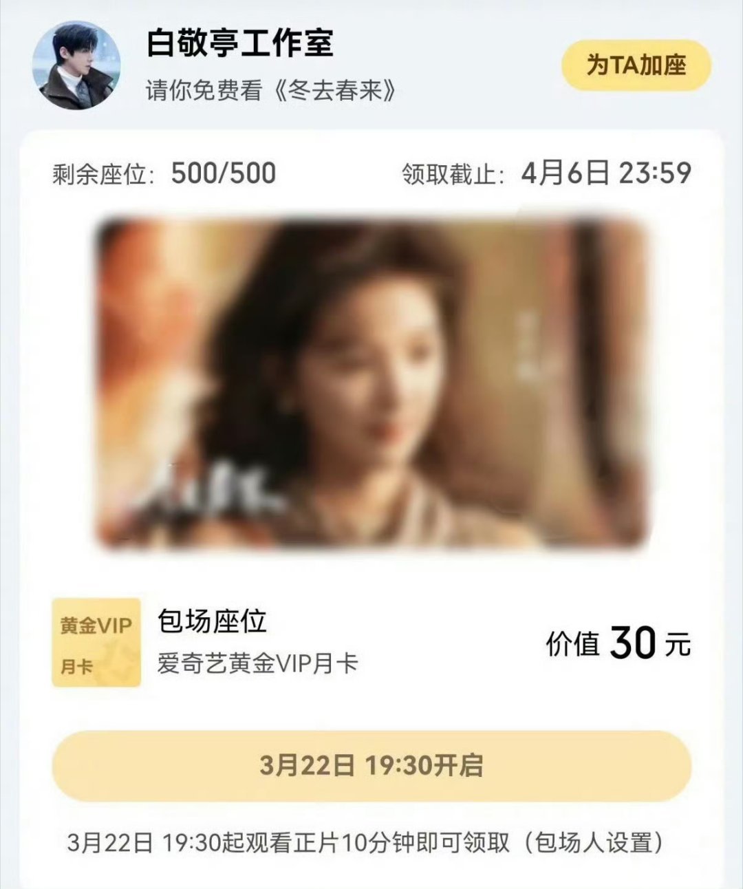 白敬亭包场章若楠冬去春来白敬亭体面人一起来期待这个90Top扛剧生未来会给我们带来哪些优秀的作品和角色💖