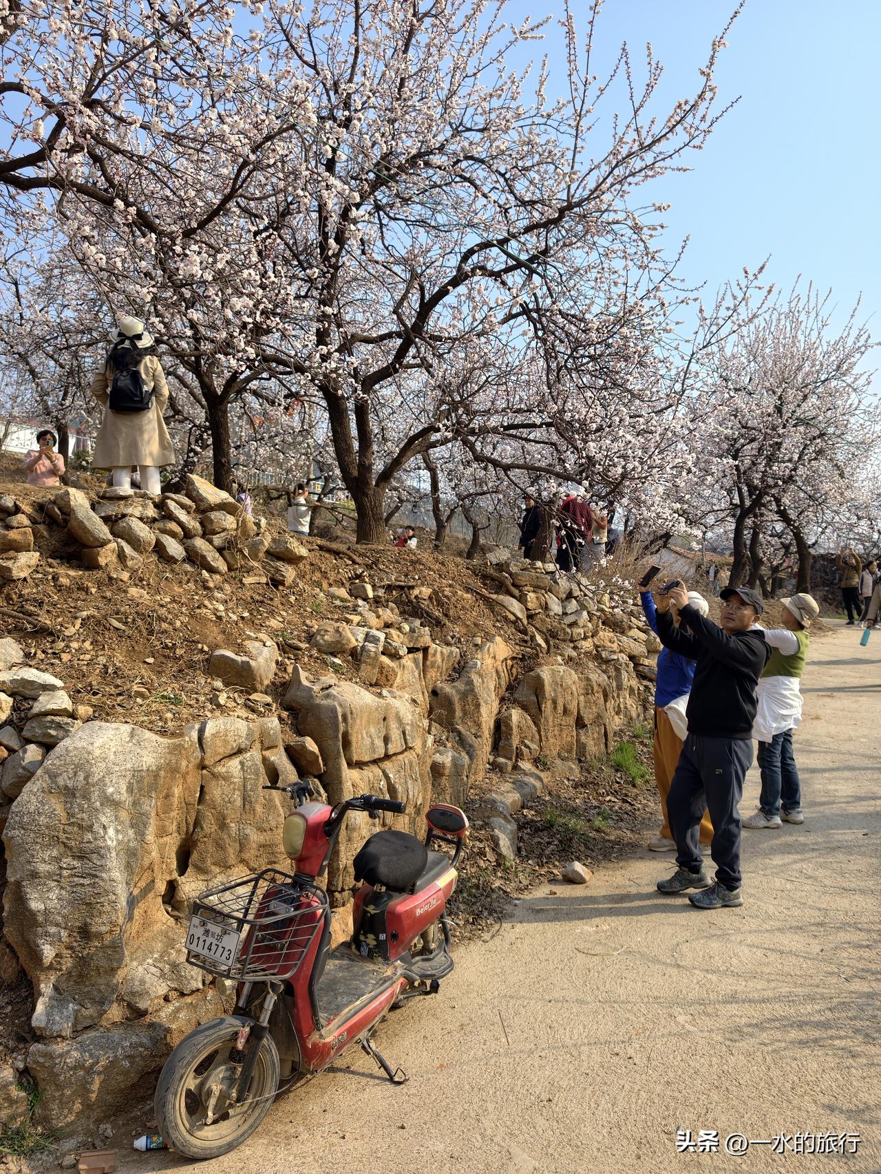 这几天刷抖音,被青州一个小山村-薄板台的杏花所吸引。昨天周六,好友相约,自驾薄板台赏杏花,没想到这么火爆,进村10分钟,出村1小时,车辆竟然这么多,差点堵在村里头。 薄板台村,位于青州弥河镇,这里三面环山,环境清幽,景色秀丽。村庄内、山坡上,栽种有300多亩杏树,每到春日,漫山的杏花开放,如云似雪,非常漂亮,特别是抖音流量的加持助力,吸引众多游客前来赏花。 薄板台免费开放,是一处春日浪漫小众打卡点。杏树最佳花期,就在3月下旬这10多天,现在去赏花正当时。4月初花瓣渐落、绿叶萌发。 自驾可导航青州薄板台村,如果周末去,尽量9点前到达,车辆可停在村外路边空旷处,尽量不要往村里开,里面停车场小,停不了几辆车,路又窄,人又多,很容易堵在里面。 [福]建议游玩路线及打卡点 先打卡村头百年老杏树林。步行到村内老屋处,就在路边,沿村水泥路走就看到了。也是抖音里经常拍的网红地。 拍照打卡完毕,再到南山杏林。沿小路向东走,到达山坡游览杏树赏花,后继续东行,过桥后即可返回村头水泥路停车处,正好一个小环线,时间1.5-2小时足矣。 如果有条件,最好清晨去,晨雾轻笼,光线柔和,适合拍氛围感大片,人少不挤。 [福]温馨提示: 文明赏花,不乱折花枝,不乱扔垃圾。春日风大,紫外线强,做好防晒。所有图片均为昨天(3月21日周六)现场实拍,手机直出无滤镜。