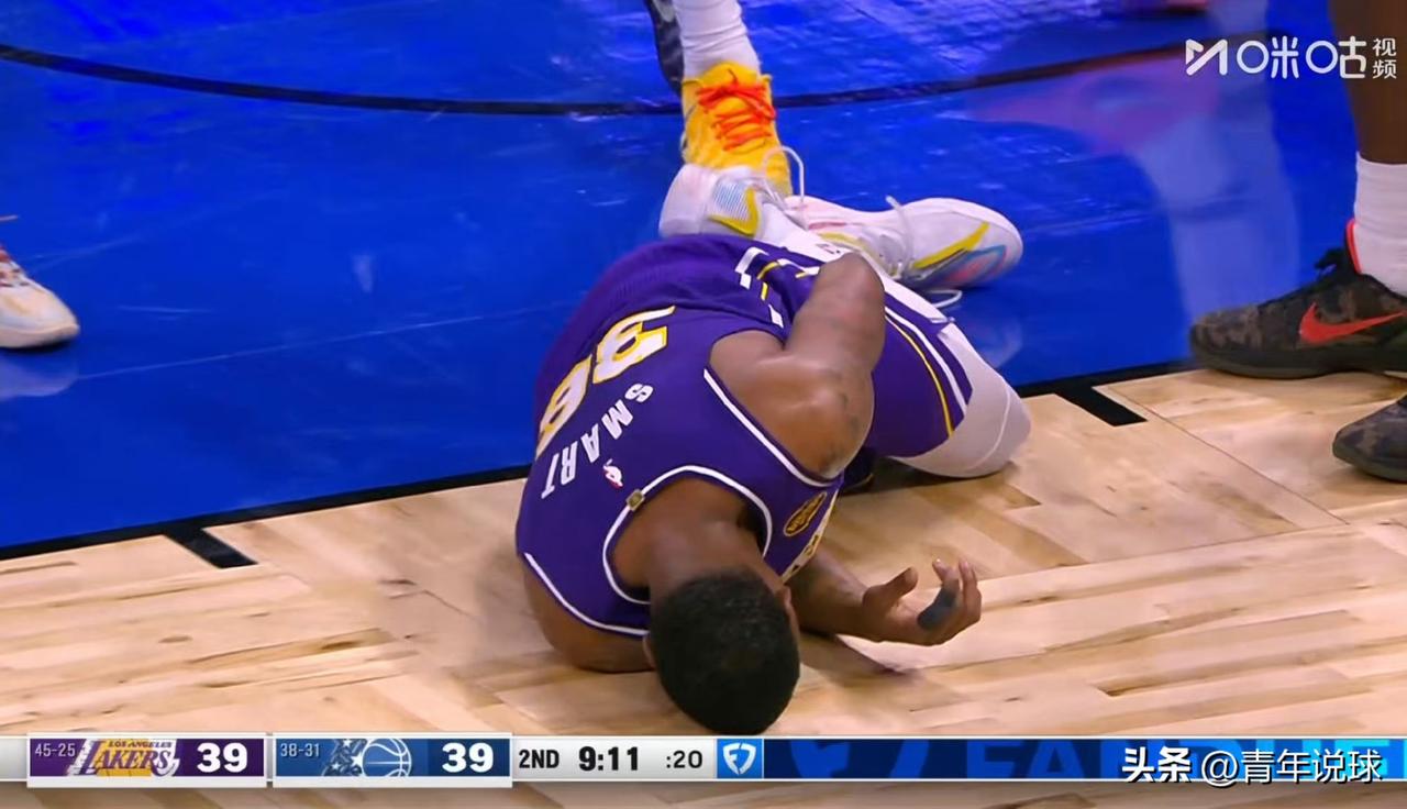 湖人队噩耗!斯玛特受伤返回更衣室! 今天客场对阵魔术队的比赛,第二节9分11秒,斯玛特在防守贝恩时不慎撞到了自己的腹股沟,他重摔倒地十分痛苦,久久未能起身,让人十分揪心。随后雷迪克用肯纳德将斯玛特换下,他直接返回了更衣室接受初步的检查和治疗,本场比赛大概率不会再回归。 斯玛特是湖人队的防守核心,重要性不言而喻,他的受伤对于球队来说无疑是一大噩耗,希望伤情并不严重。