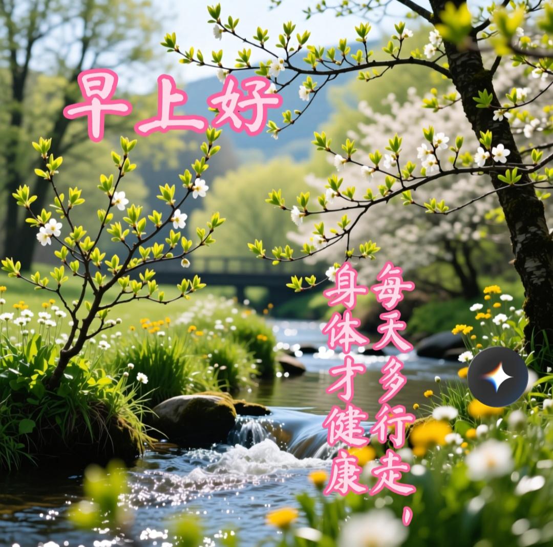 🌺春来百花香,🍀大地换新装,🌇户外多行走,💫身体才健康,💚每天开心过,🎳快乐度时光。早上好!💖🟡