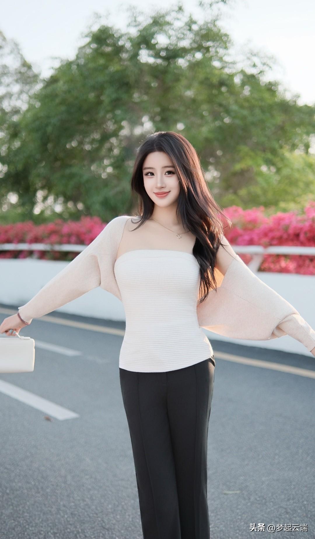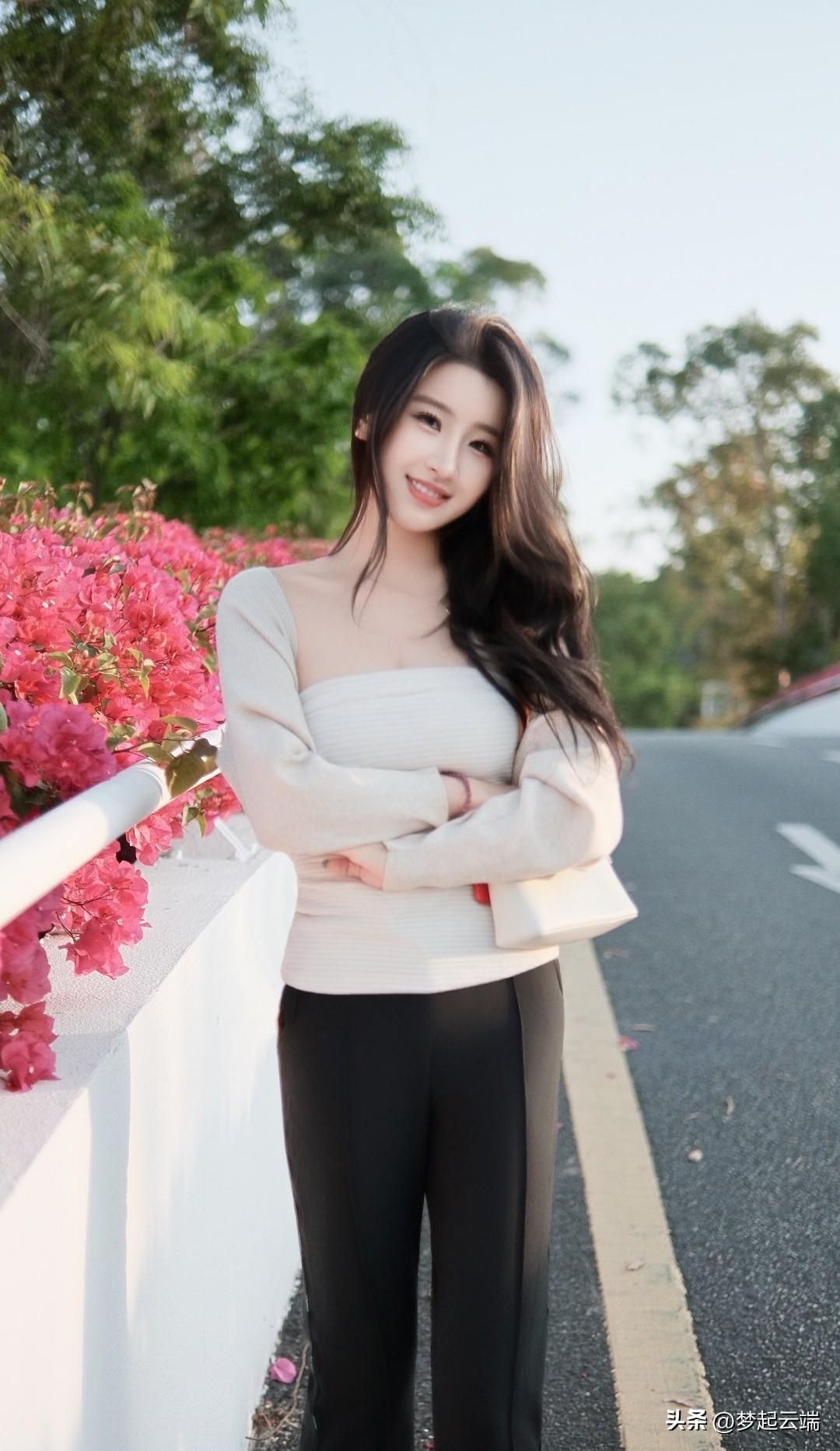 阳光下的少女,鲜花丛中的微笑。