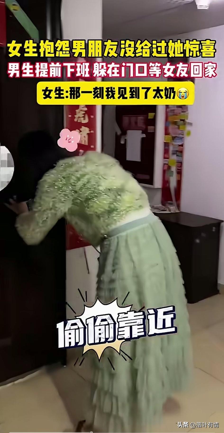 女友说男友从来没有给过她惊喜, 这次男朋友豁出去, 提前下班之后, 躲在暗处我女朋友回来, 看到女朋友回来之后, 他偷偷跟在身后, 当女朋友全心贯注开门的时候, 他直接叫了一声, 女朋友吓得大叫哇! 那一刻眼泪差点出来, 女朋友说他有病, 男朋友说这是给你的惊喜, 惊不惊喜?意不意外? 女友表示差点被他吓死, 这不叫惊喜,这叫惊吓, 那一刻差点被他吓到去见太奶, 男女之间确实需要点惊喜, 但是惊喜不对的时候就变成了惊喜, 大家觉得这样的男女朋友有意思吗? 爱情故事 男朋友欺骗我 对女友的惊吓 女孩见男友