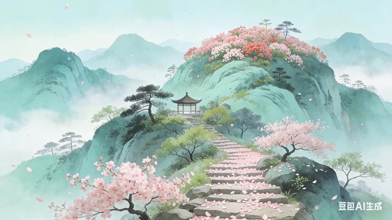 山脚下,最先迎接我的是一树早樱。粉白的花瓣薄得透光,像是谁用宣纸做成的一般。风过处,花瓣纷纷扬扬地落下来,拂了一身还满。石阶上早已铺了薄薄一层,踩上去软软的,叫人想起“落花时节又逢君”的句子,只是此刻逢着的,是这满山的春意。 往上走,路渐渐陡了。两边的树却愈发精神起来。香樟开始换叶了,新长的叶子嫩嫩的,黄绿黄绿的,在阳光下几乎透明。老叶子呢,却还是深绿的,一深一浅地交错着,像是时光在这里打了个盹儿。偶尔有鸟声从密叶间漏下来,清脆得很,却看不见影子,只觉着这山更幽了。 半山腰有座小亭。坐在亭里歇脚,看山下的人家都成了火柴盒一般大小,马路像条灰带子,车子蚂蚁似的慢慢爬。忽然就想起郁达夫说的,登山的人,“大约总有一种超然物外的感觉”。这话不错,在这春山里,连呼吸都变得绵长起来,吸进去的是草木的清气,呼出来的是积了一冬的浊气。 最妙的是快到山顶时,遇见一片野生的杜鹃。红艳艳的,开得泼泼洒洒,全不管不顾的样子。蜜蜂嗡嗡地忙着,翅膀在阳光下闪着金光。这才想起古人说的“春山澹冶如笑”,原来山也会笑的,这一山的烂漫,不就是它的笑容么? 登上山顶时,天已近午。阳光暖暖地照着,风却还是凉的。远山如黛,近树含烟,一重重地铺展开去,淡到几乎没有。山顶的石头还带着凉意,坐下去,只觉得整个人都轻了,轻得像要融进这春色里去。 下山时,太阳已经偏西。回头望望,山还是那座山,可又觉得不一样了。大概是我的心里,也装了一座春山吧。